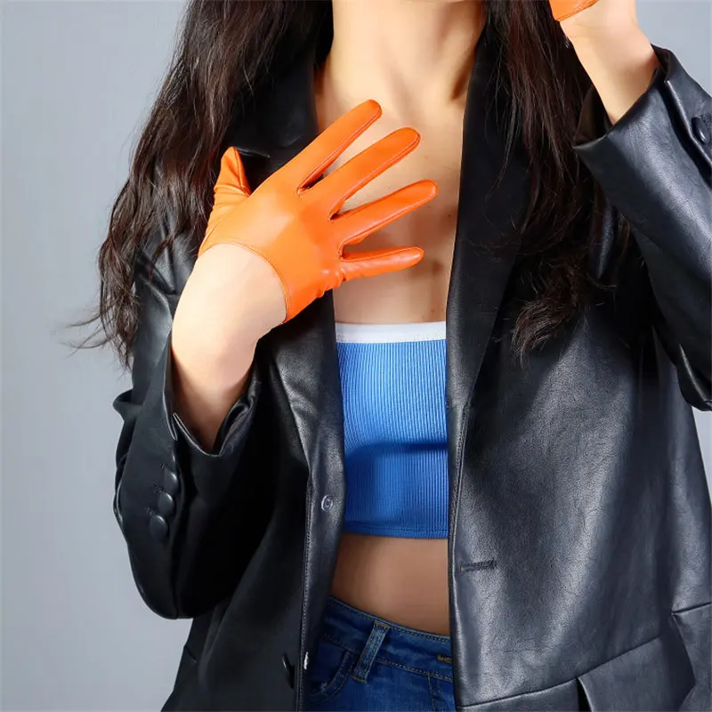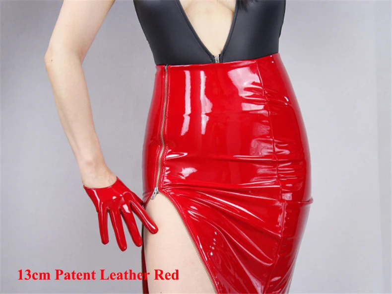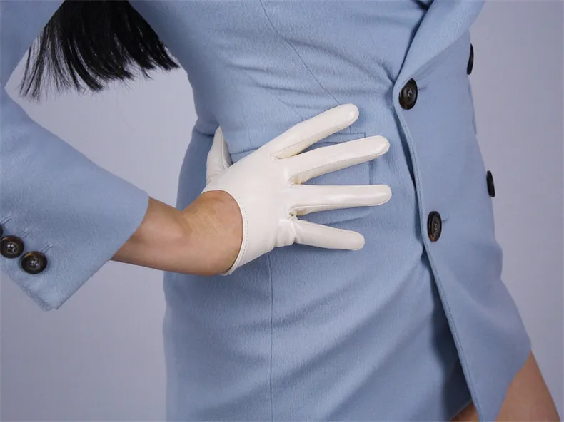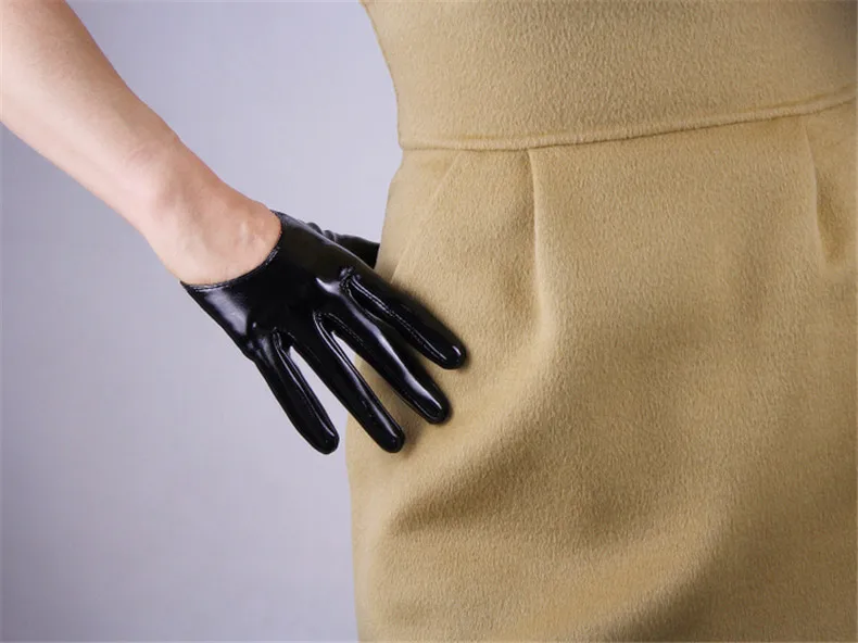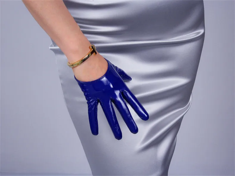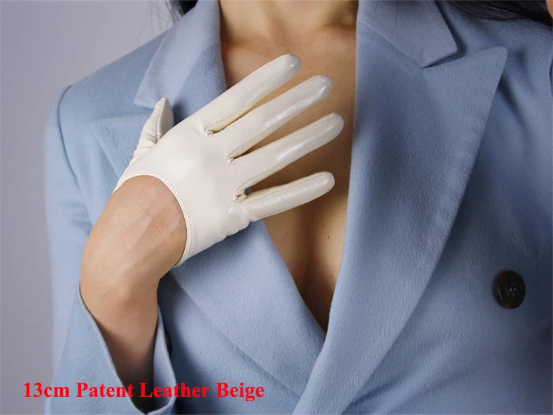 Ультракороткие перчатки для сенсорного экрана 13 см, имитация кожи, лакированная кожа, зеркало, яркая кожа, яркий черный, белый цвет, дикий женский WPU87