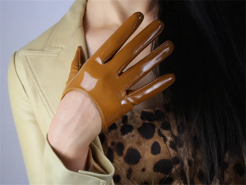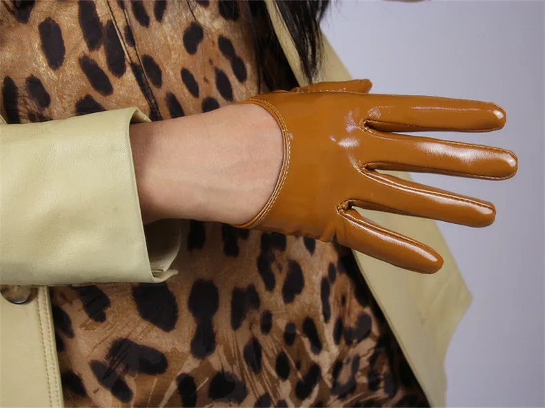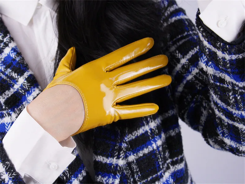 Женские лакированные перчатки из ПУ кожи, короткие стильные перчатк...