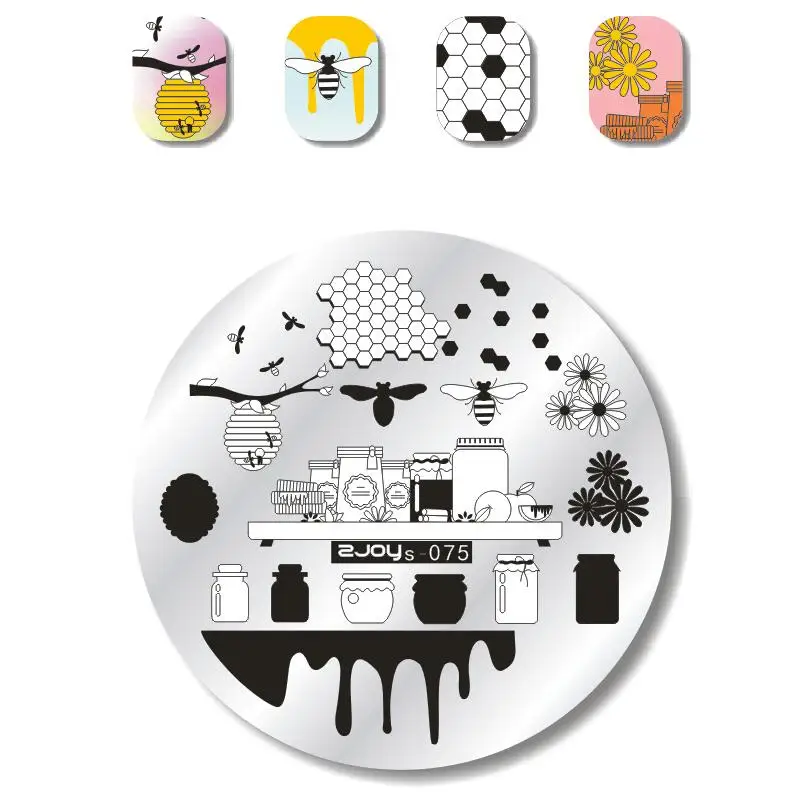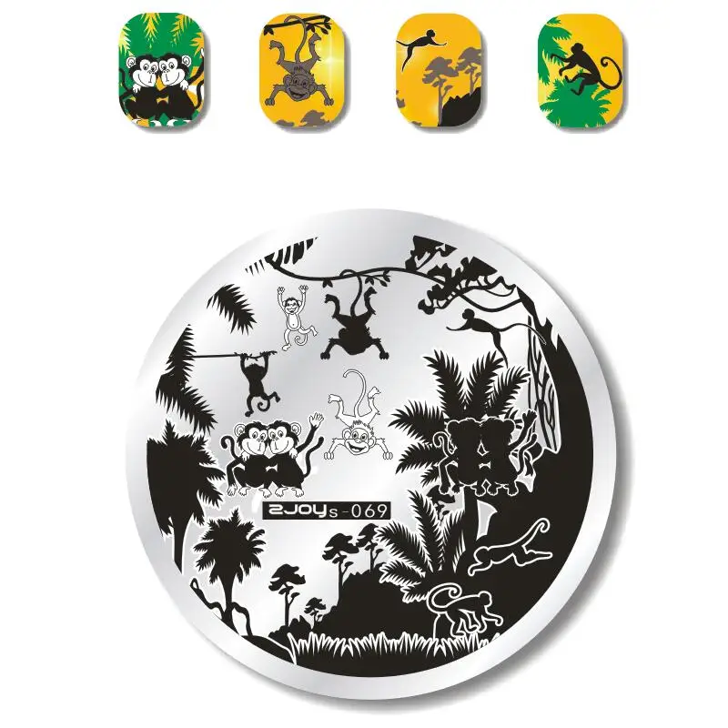 Круглая Пластина для стемпинга ногтей, цветок, Геометрическая обезьяна, пластина с изображениями для нейл-арта