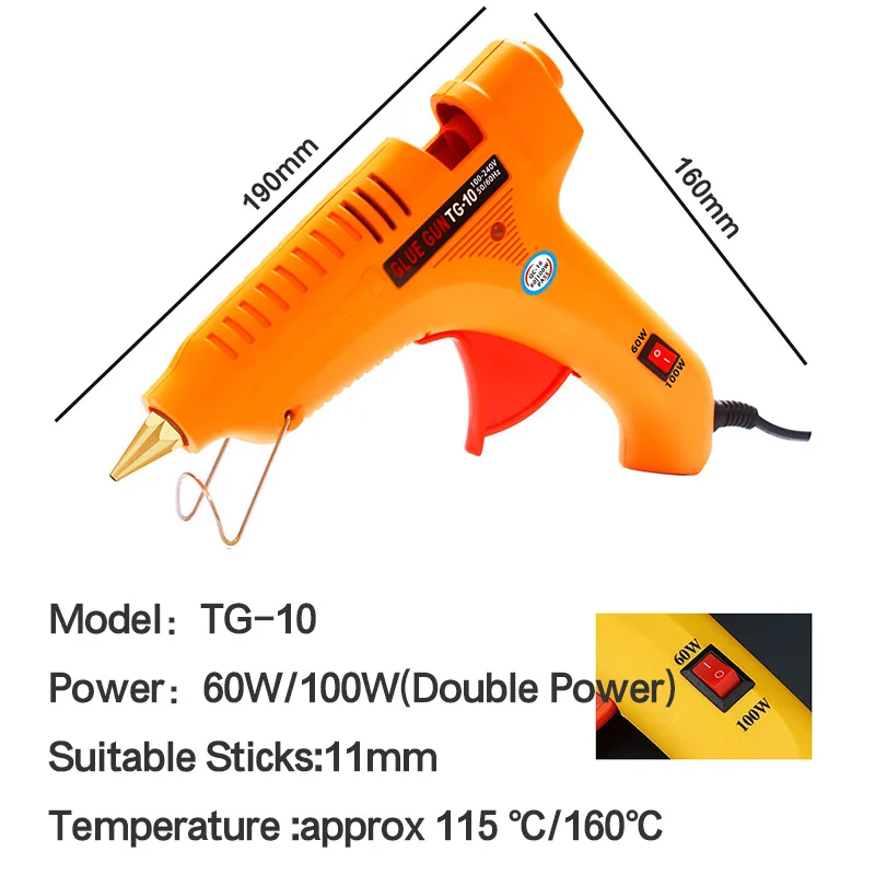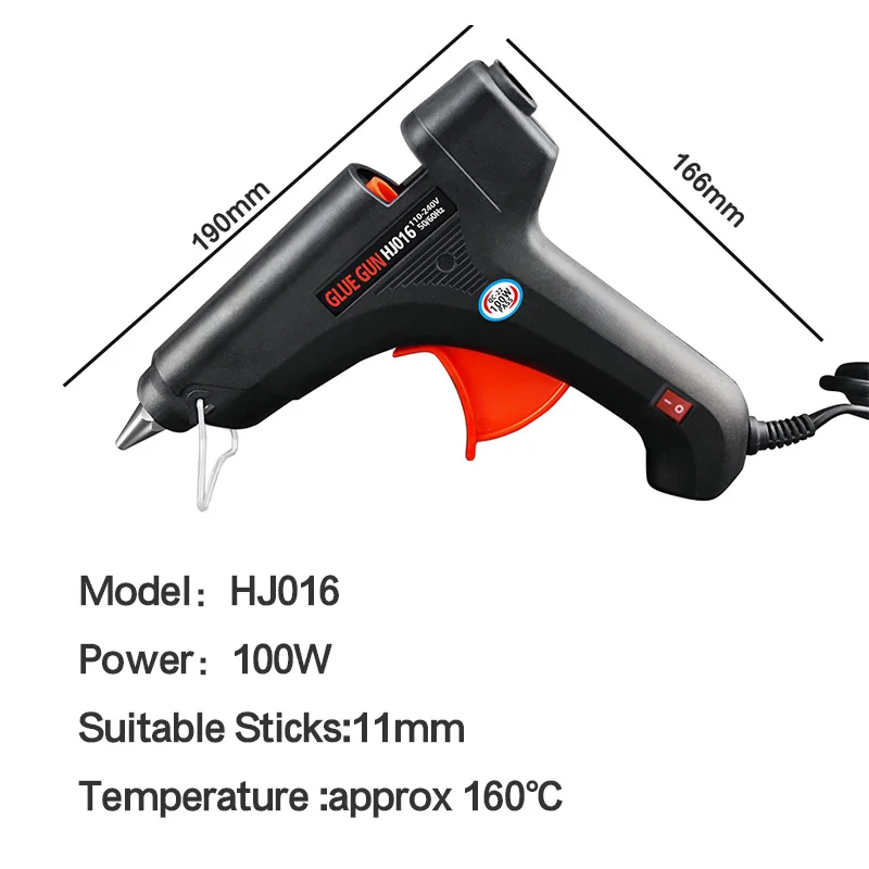 Бесплатная доставка, 100 Вт, термоклеевой пистолет сделай сам, черные стержни, триггер, инструмент для художественного творчества и ремонта с подсветкой, 110-240 В
