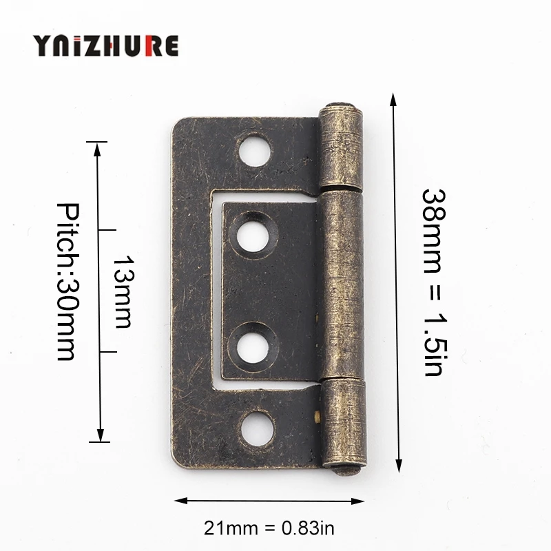38*21 мм 10 шт. винтажные бронзовые античные железные петли для двери шкафа для багажа, декор с 4 отверстиями, мебельное украшение, односторонние петли