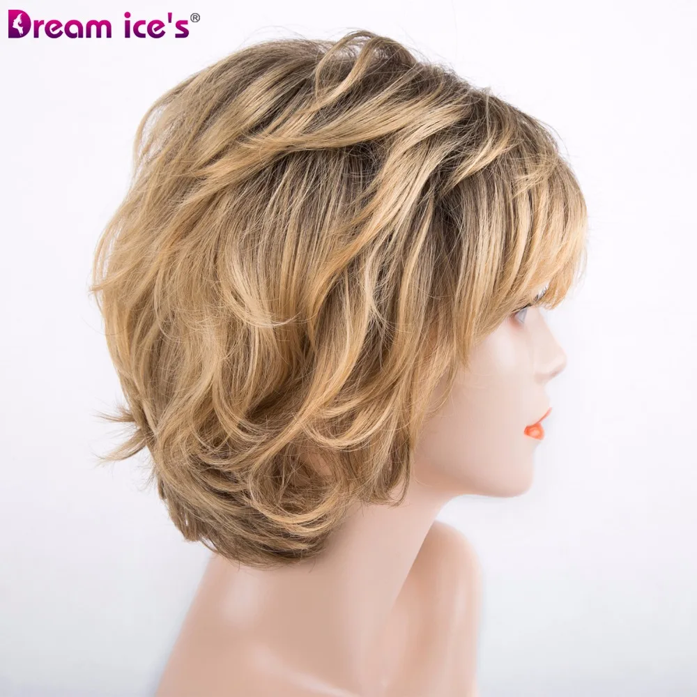 Прямые короткие парики XISHIXIU с эффектом деграде светильник-коричневые, темно-коричневые, с корнями, синтетические, с полной челкой, термостойкие, для косплея, для женщин