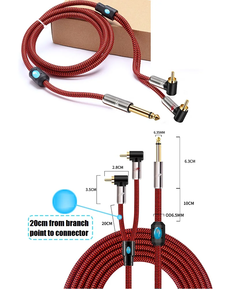 Аудиокабель TS моно-штекер 14 дюйма с разъемом 6,35 мм на 2 штекера RCA для миксера, звуковой консоли, бас-усилителя электрогитары, экранированные шнуры