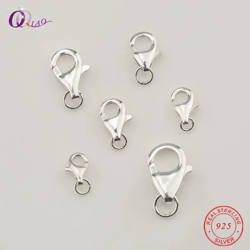 Застежки и крючки для женских украшений из стерлингового серебра 925 пробы, ожерелья, браслетов, аксессуары для бижутерии, 8-15 мм, 2 шт.