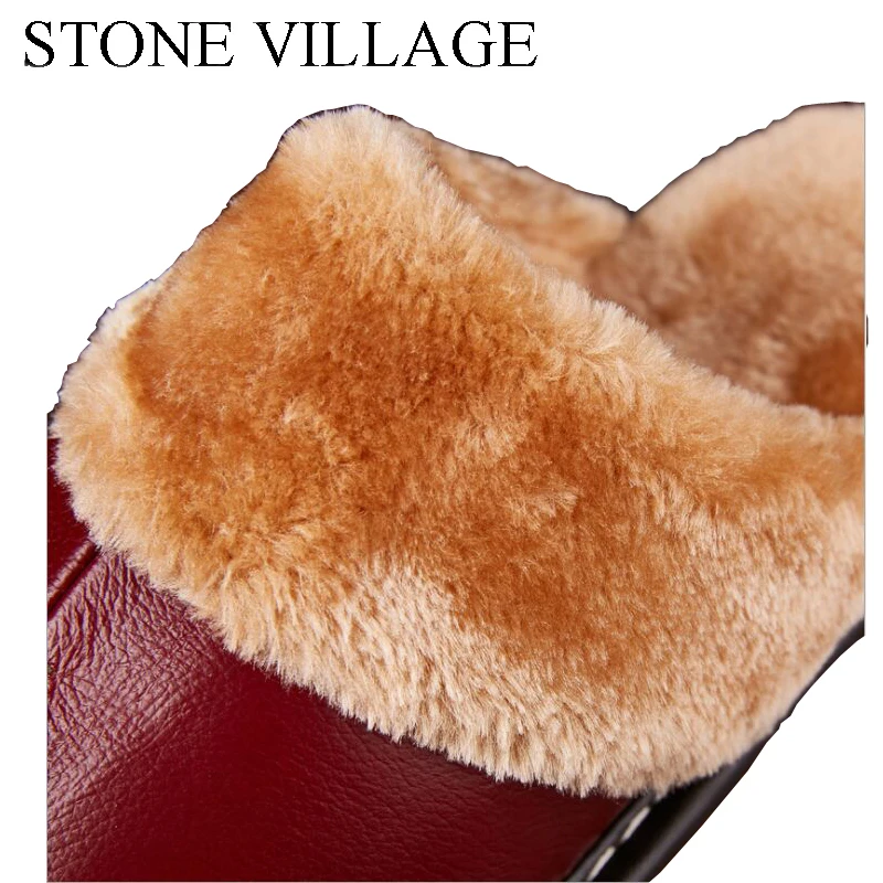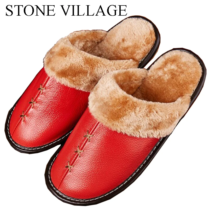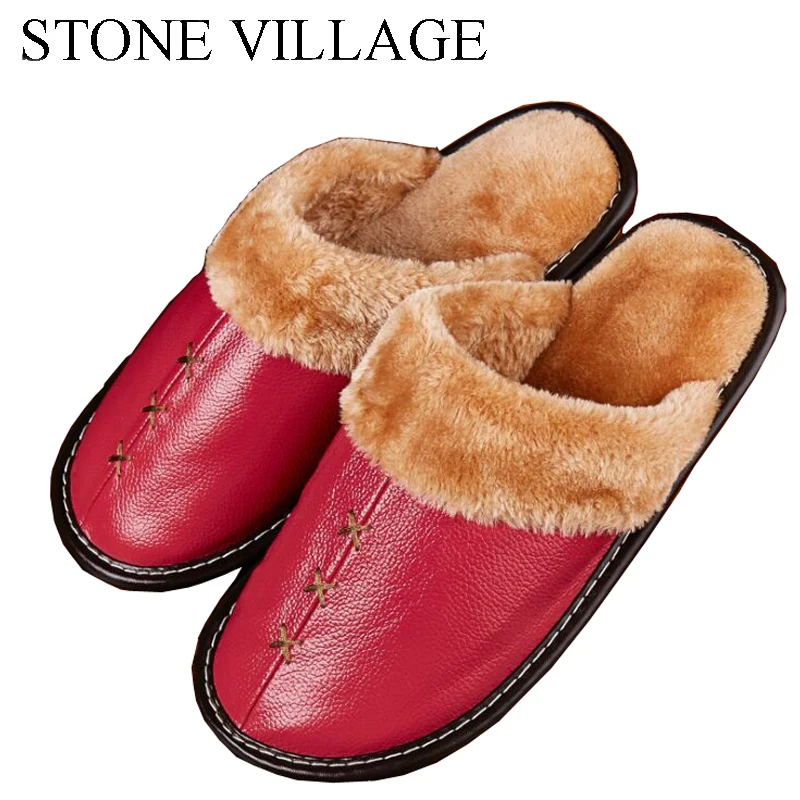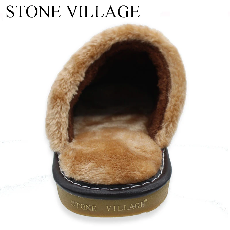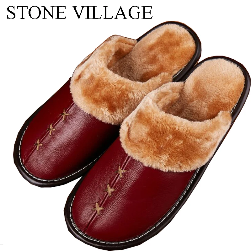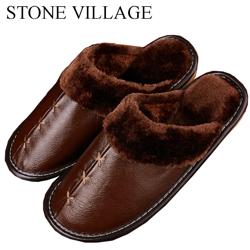 Зимние теплые плюшевые тапочки из натуральной кожи для мужчин и жен...