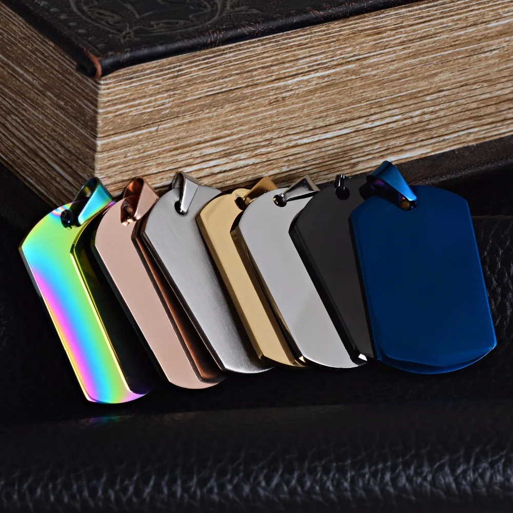 Военный армейский ID оптовая продажа 7 цветов из нержавеющей стали имя незаполненные бирки на ошейник для собак кулон прямоугольное ожерелье ювелирные изделия