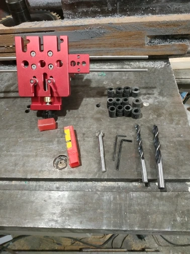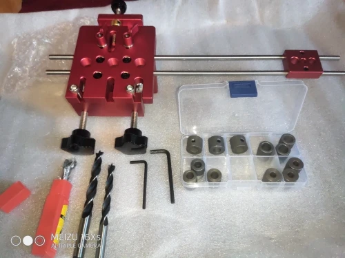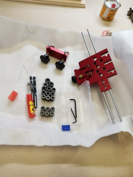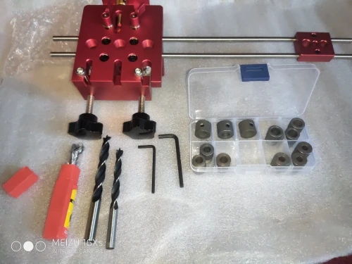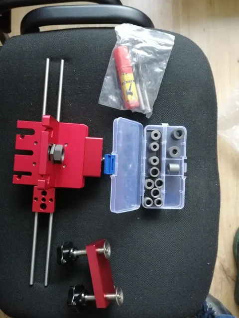 Отличный кондуктор. Качество исполнения выше всех ожиданий. Комплект как на фото - сам кондуктор, 2 стандартных сверла по дереву + 1 сверло форстнера, ограничители глубины сверления, металлические туннели под разные свёрла, пара ключей-шестигранников. На кондукторе есть несколько винтов под шестигранник, которые комплектными ключами не открутить(размеры не те), но это не критично. В целом кондуктор супер - легко позиционируется, удобно делать отверстия с повторяющимся шагом, прилично упрощает работу с соединением на шканты. Доставка нормальная, около 3 недель, но очень долго тупила местная почта, пол мира пересечь быстрее, чем в соседний город доехать. Коробка помялась в пути, но продавец очень хорошо перемотал всё внутри, так что приехало всё в идеальном состоянии.