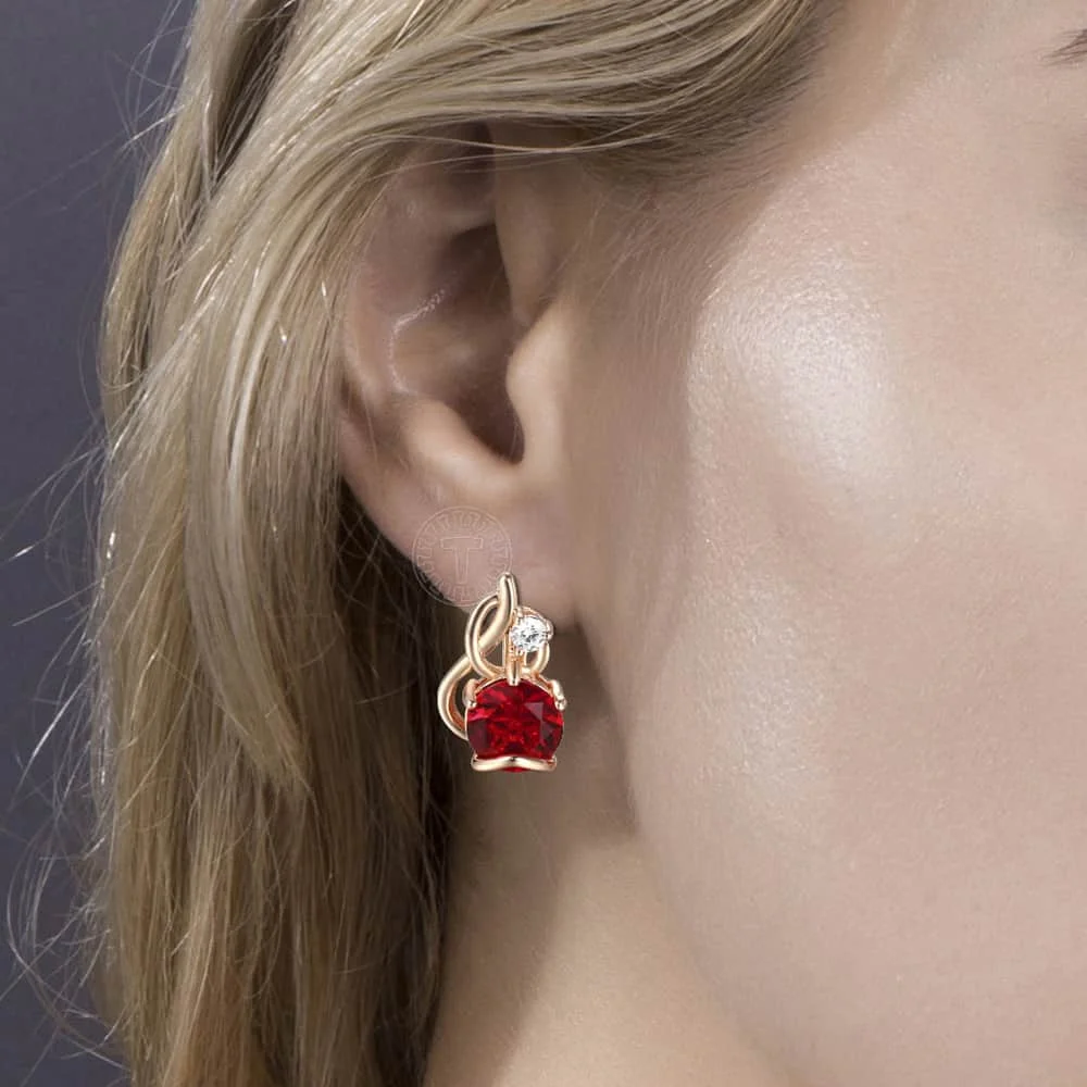 Davieslee 585, серьги с покрытием из розового золота , в форме воды, с красным камнем, проложены прозрачными фианитами для женщин, серьги-гвоздики , модное ювелирное изделие LGE175