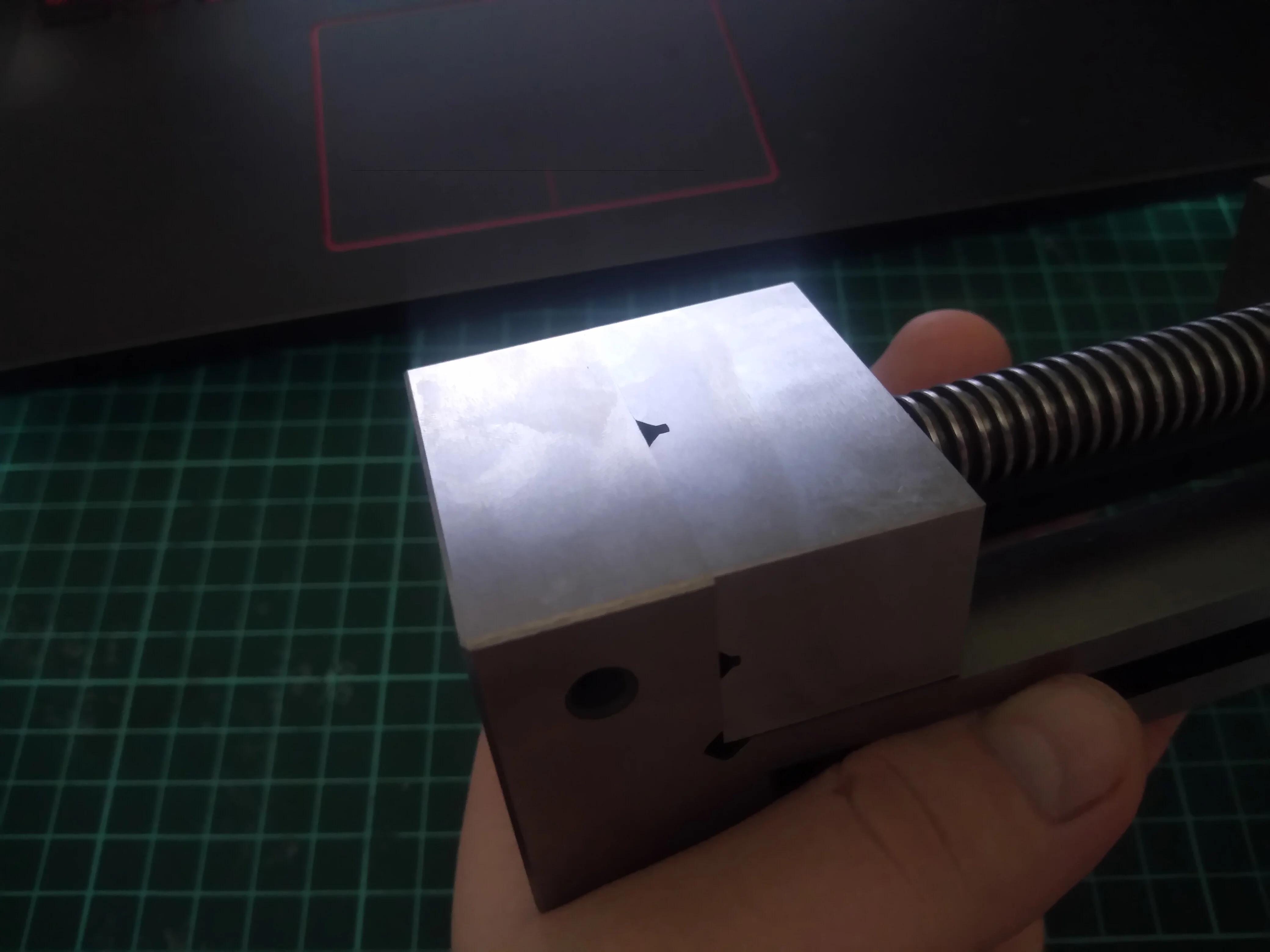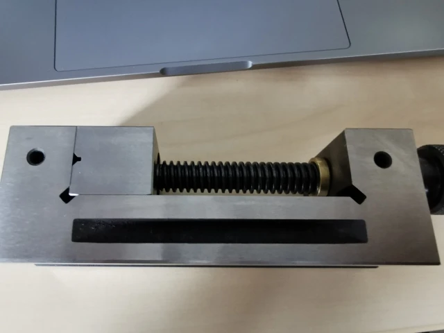 Тиски хорошие. За эту бы цену - 75 мм, а так дороговато. Есть небольшая неточность в ширине подвижных губок, немного не симметрична горизонтальная фаска. Жаба немного прижимает, но о покупке не жалею. Попытался автоматическим керном оставить отметку, керн пострадал гораздо больше.