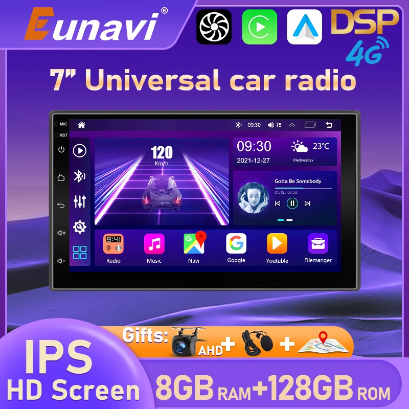 Универсальный Автомобильный мультимедийный плеер Eunavi, 2Din, 7 дю...