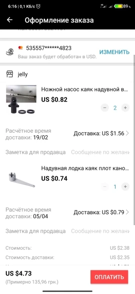 Я заказал два штуцера к насосу и ключ для клапанов.Все было упаковано в одну посылку .Но плату за доставку с меня сняли три раза, за каждую деталь отдельно.Считаю это не правильно. Переговоры с продавцом ни к чему не привели.Он отморозился, сделав вид что не понимает о чем речь.За доставку я переплатил более1.5 доллара.