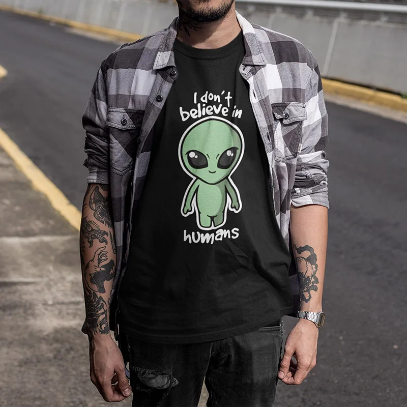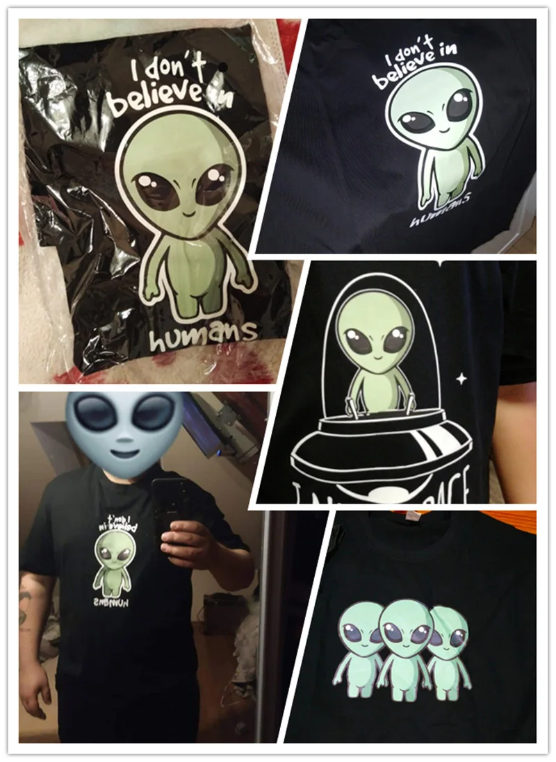 Футболка с коротким рукавом и принтом НЛО, 100% хлопок, европейские...