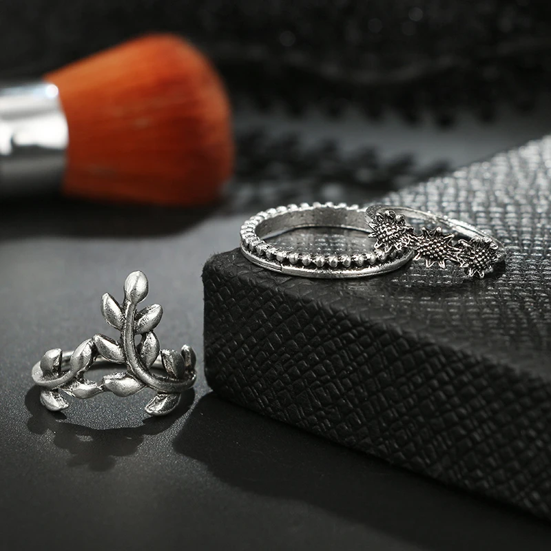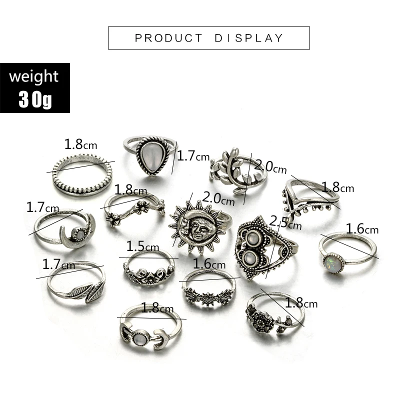 Винтажное кольцо Tocona, 14 шт.компл., античное серебряное кольцо с подсолнухом и Луной для женщин и мужчин, очаровательные ювелирные изделия в стиле бохо с цветами и кристаллами, кольца 6226