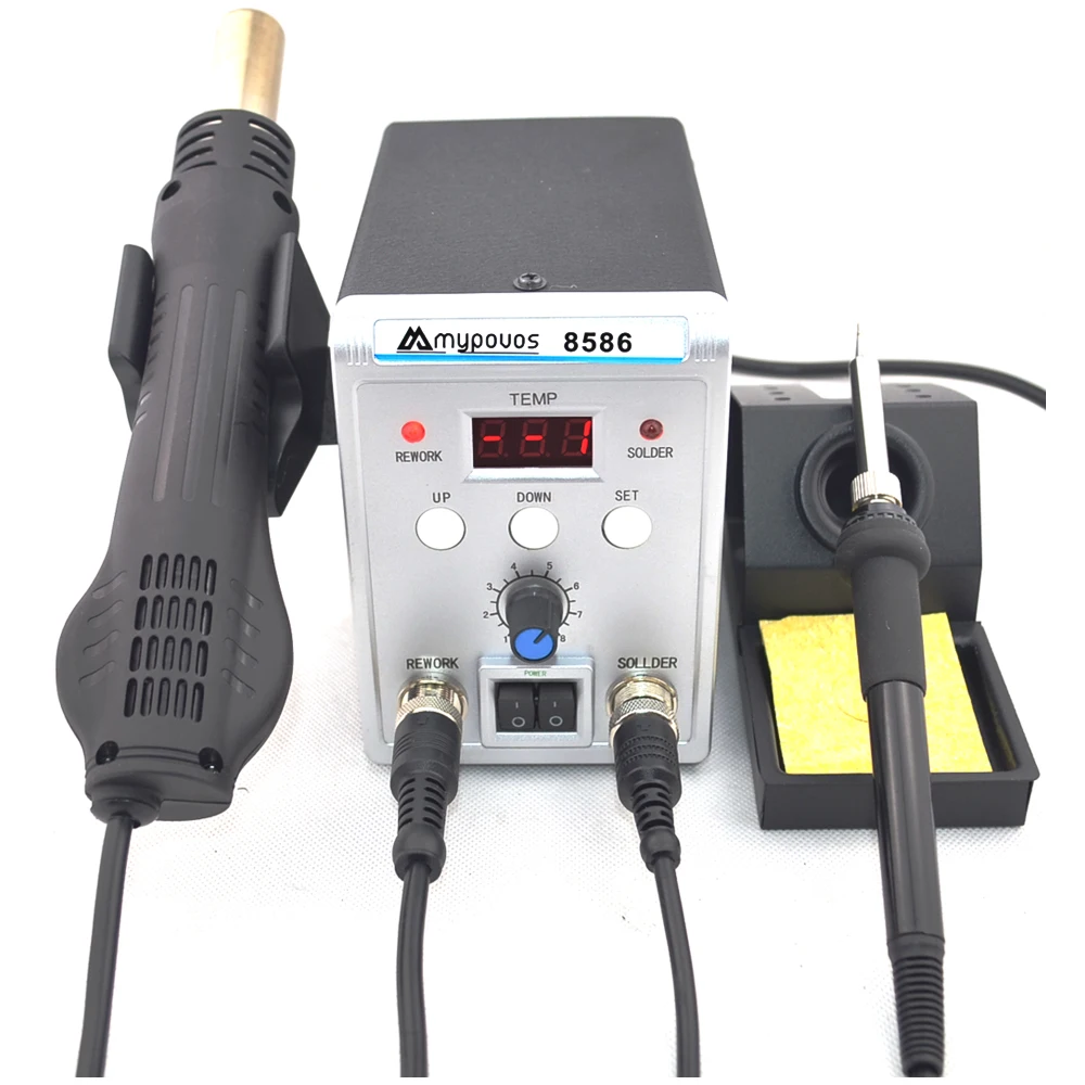 MYPOVOS 750 Вт 8586 2в1 Электрические паяльники паяльные станции + пистолет горячего воздуха лучше SMD паяльная станция 220 в RU Бесплатная доставка