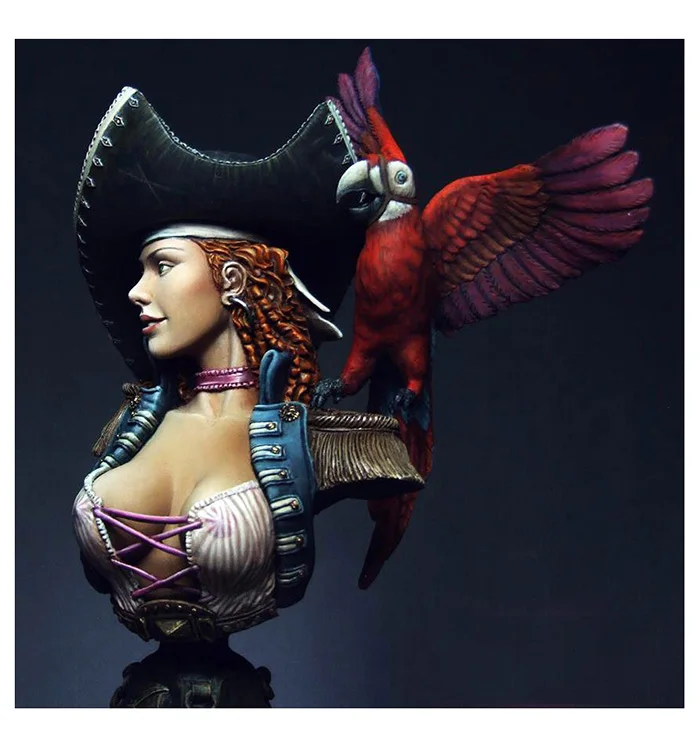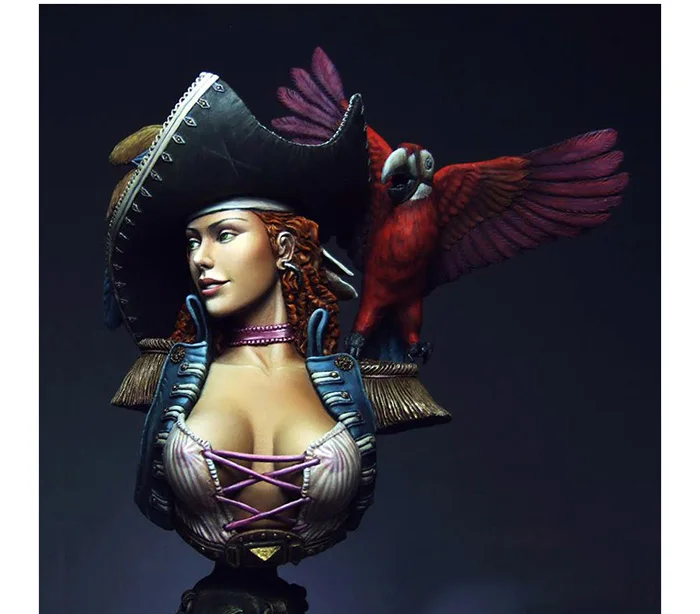 Бюст из смолы в масштабе 110, женский пират и попугай