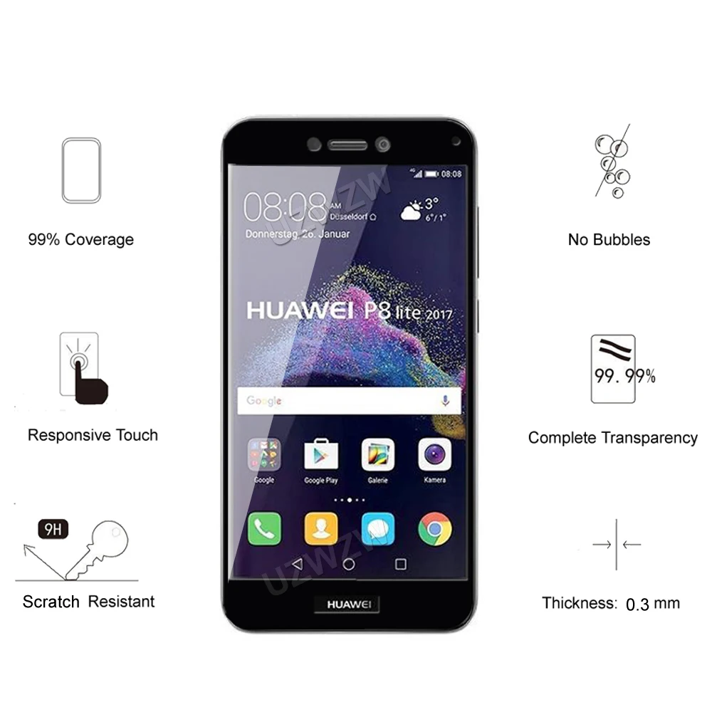 Для Huawei P8 Lite 2017 полное покрытие Закаленное стекло Защитная пленка для экрана 2.5D 9H твердость