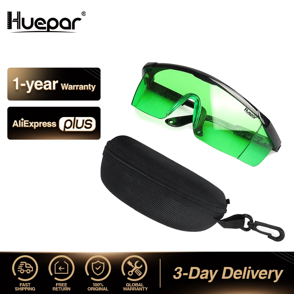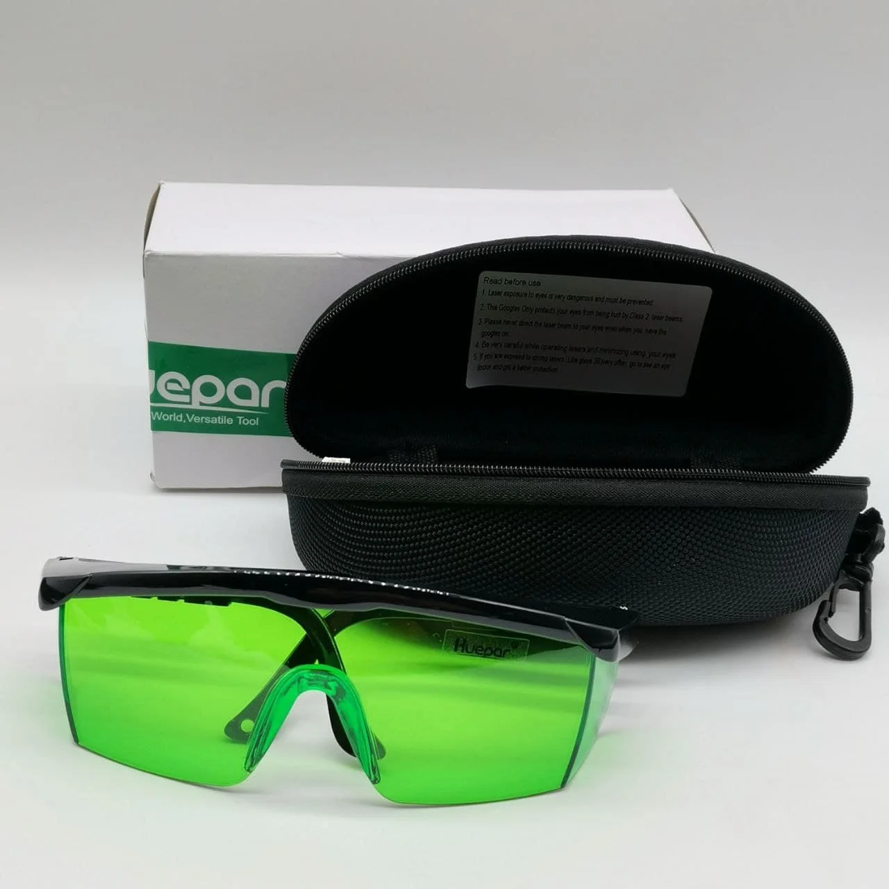 Защитные очки Huepar для улучшения лазера, зеленые Регулируемые защитные очки, очки с твердым чехлом для линейныхвращающихся лазерных лучей
