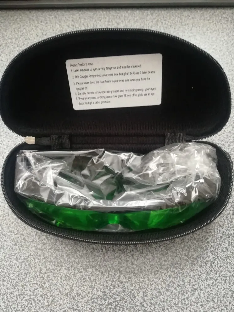 Очень хорошие линзы, но это не улучшает видимость зеленого линии снаружи или внутри, но я думаю, что это защищает, избегая прямого контакта лазерного света с нашими глазами. The product arrived Within 2 weeks.