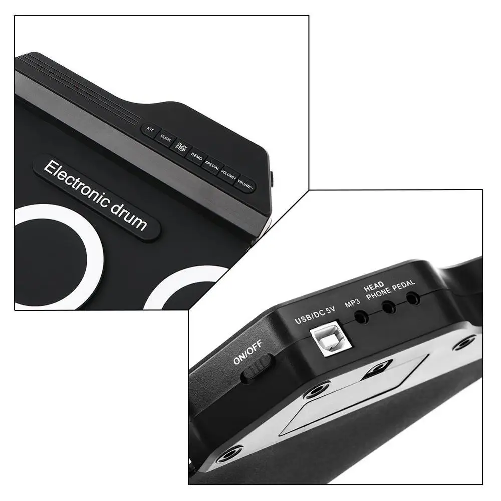 Набор силиконовых барабанов, набор цифровых электронных барабанов компактного размера USB 7 барабанные колодки с барабанные палочки, ножные педали для начинающих
