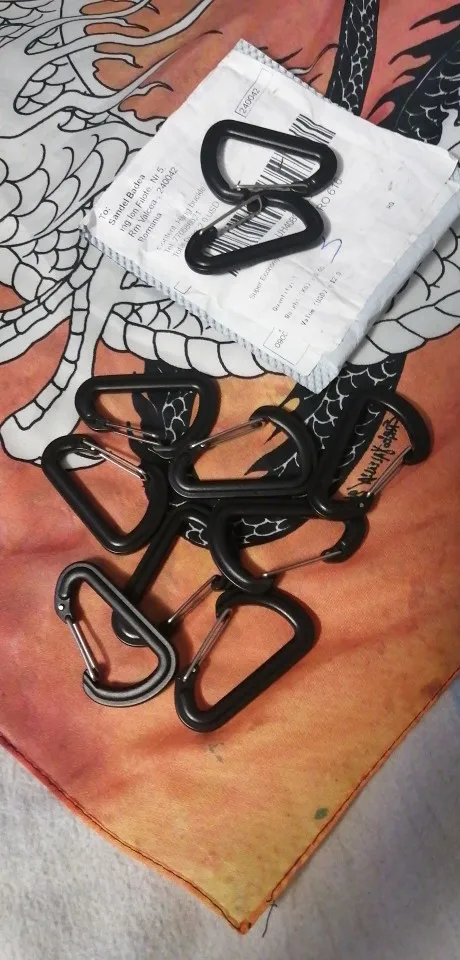 Быстрая отправка. Карабины не самые удобные, профиль не круглый, хорошо годится для веревочных петелек, но плохо подходит, например, для ложек и тому подобного. Но прочные.