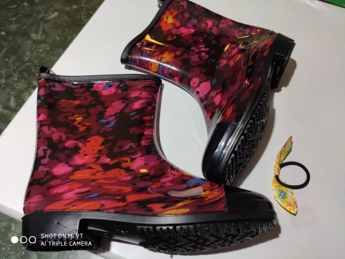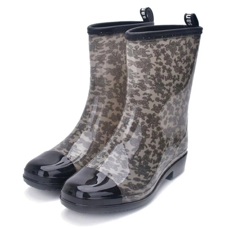 Женские резиновые сапоги на низком каблуке, с нескользящей подошвой
