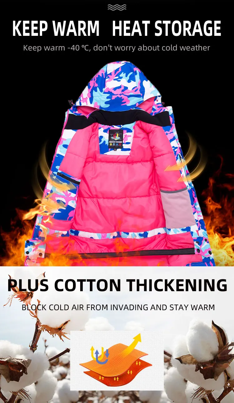 Лыжный костюм женский, зимний, теплый, водонепроницаемый, ветрозащи...