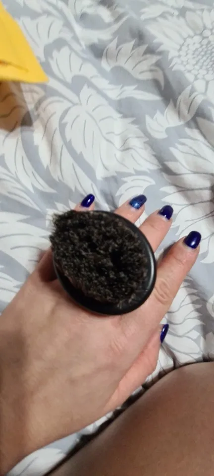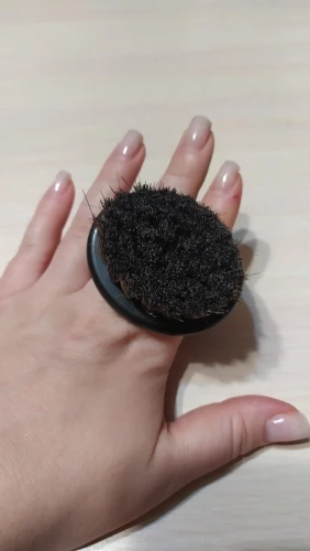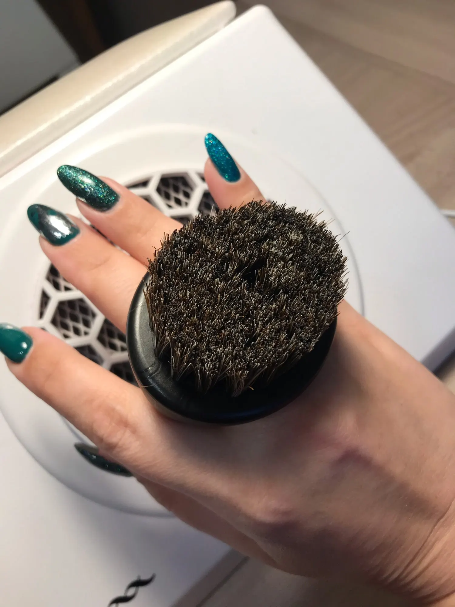 Девочки-маникюрши, щеточка супер! Достаточно жесткая, но не грубая, для стряхивания пыли идеальна! Не могла найти себе подходящую на свои пухлые пальчики, а эта и удобная и густая и стильная и круглая-круть! Пришла в МО очень быстро, ворс не лезет, густой, берите не пожалеете!