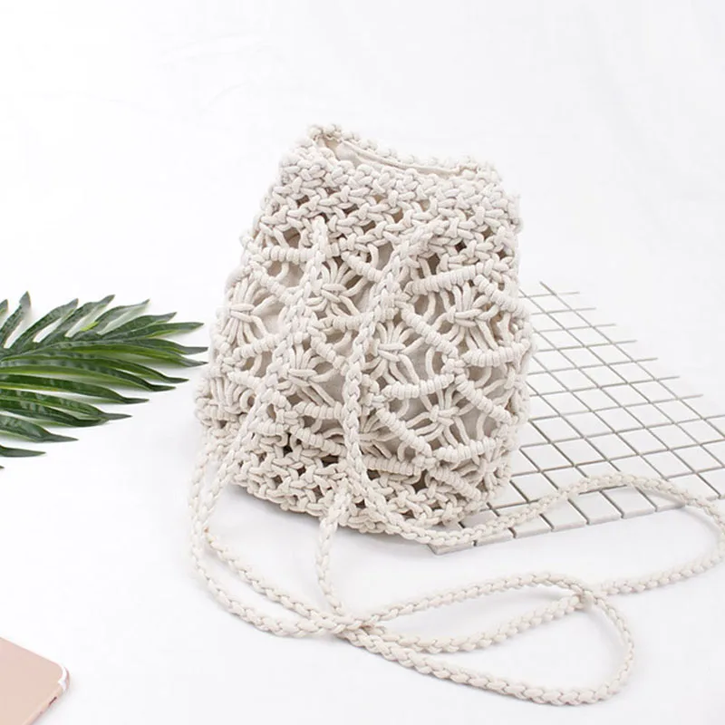 Винтажный Плетеный рюкзак, хлопковая веревка, маленькая соломенная сумка для отдыха, путешествий, свежий рюкзак, сумки ручной работы