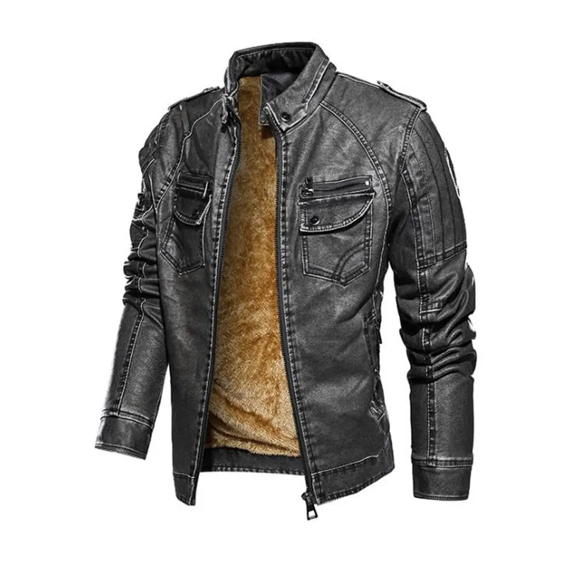 Утепленные мужские зимние куртки, кожаная куртка, модные мотоциклет...