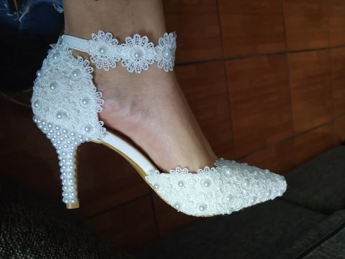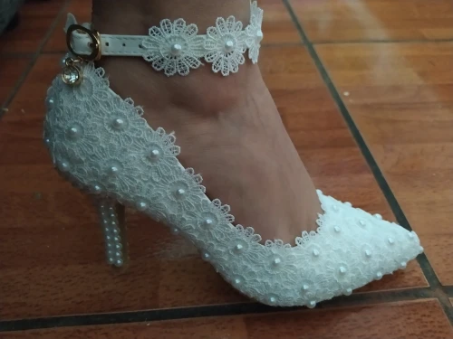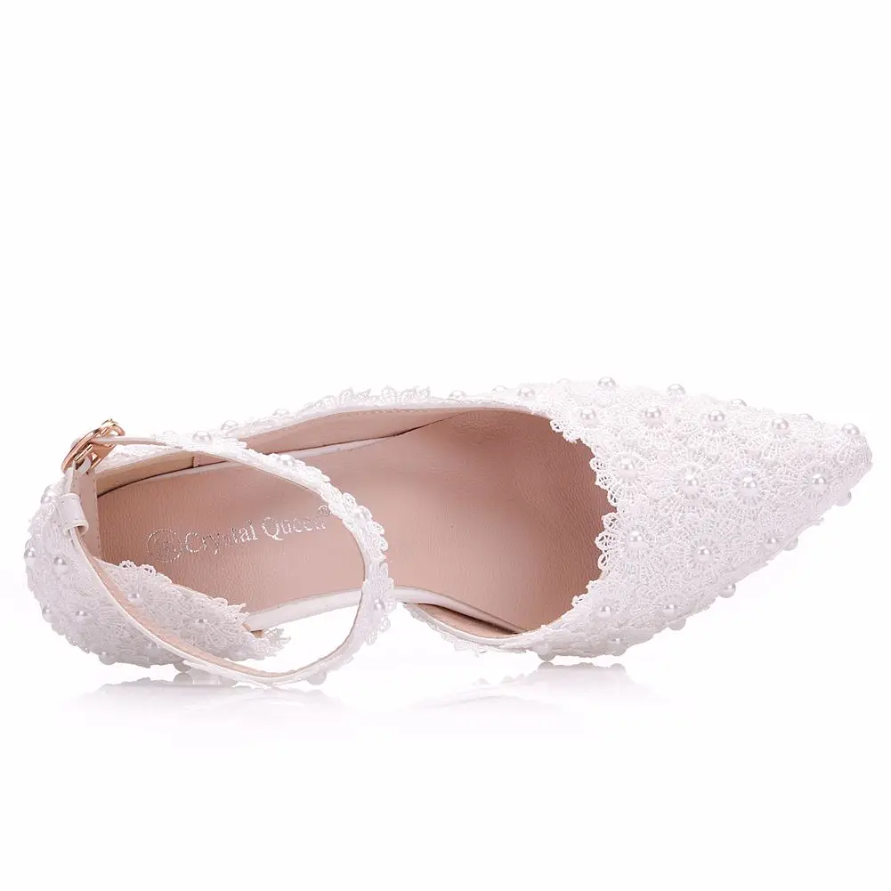 Туфли-лодочки женские свадебные на высоком каблуке 8 см, без застежки, заостренный носок, Хрустальная королева, кружевной цветок, белые