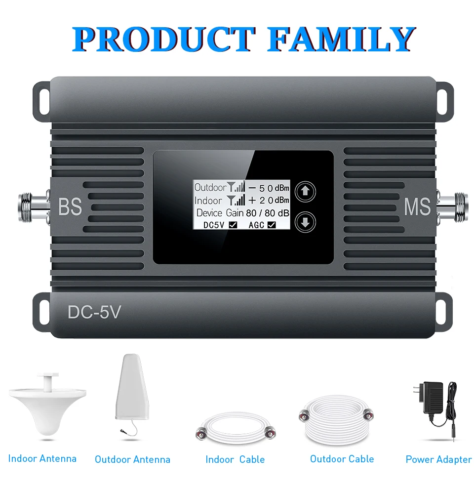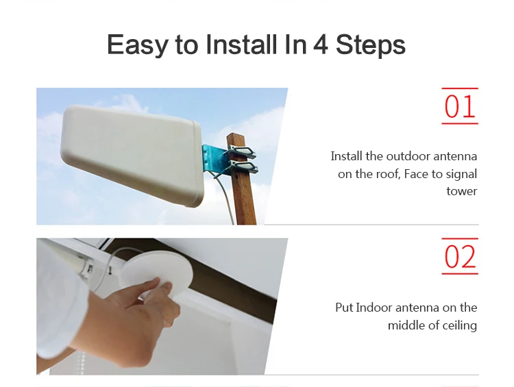 1. Получен хороший внешний сигнал.2. Кабель передает хороший сигнал ретранслятору.3. Усилитель усиливает прием сигнала.4. Улучшение сигнала мобильного телефона в помещении.Перед покупкой убедитесь, что у вас снаружи есть как минимум 2 полосы сигнала 2G/3G, иначе этот продукт вам не поможет.