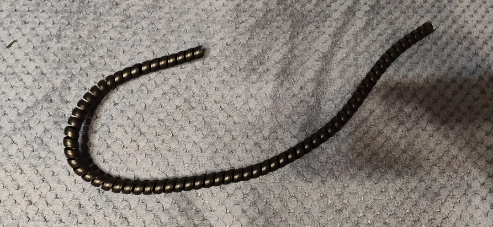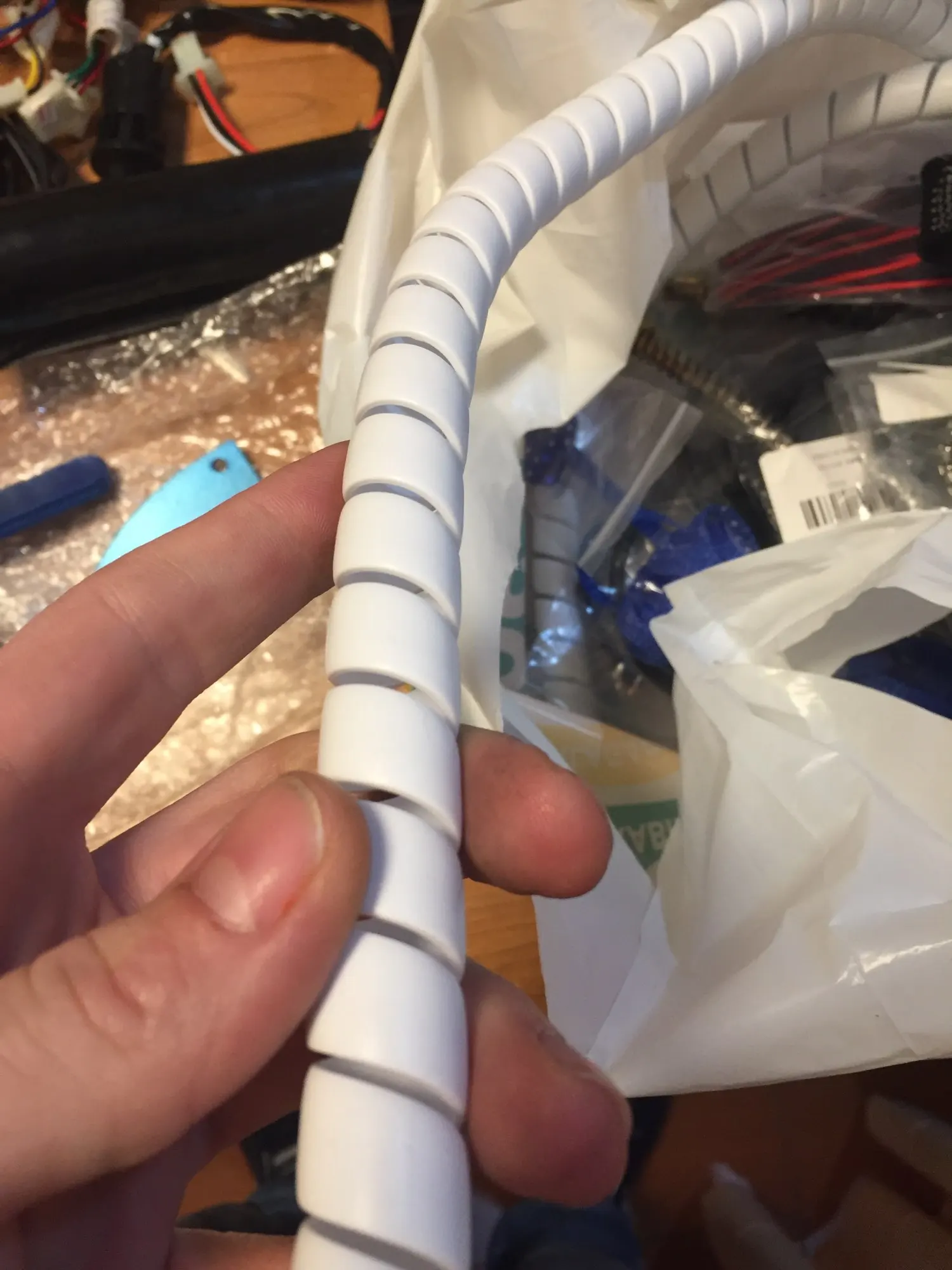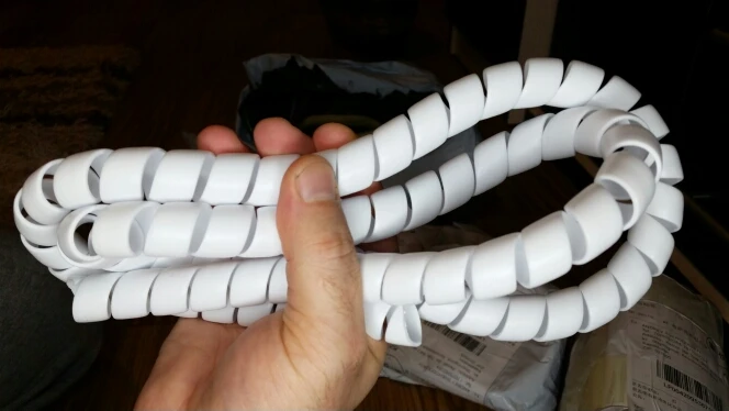 Товар пришла в сборе с другими посылками за 18 дней до Ставрополя, не ожидал, что так быстро. Завернуто было так себе, благо что там нечему ломаться. Оплетка представляет из себя жесткий пластик, без какого либо каркаса внутри, но имеет форму памяти, поэтому если вы неудачно ее как-то загнули, то она в конечном итоге все ровно прижмется плотно своему внутреннему диаметру (у меня 10 мм). Заказывал 2 метра, пришло 2 части по 1 метру (единственный недостаток), так что осталось куски по мелочи, уж не знаю, выкидывать их или оставить.
