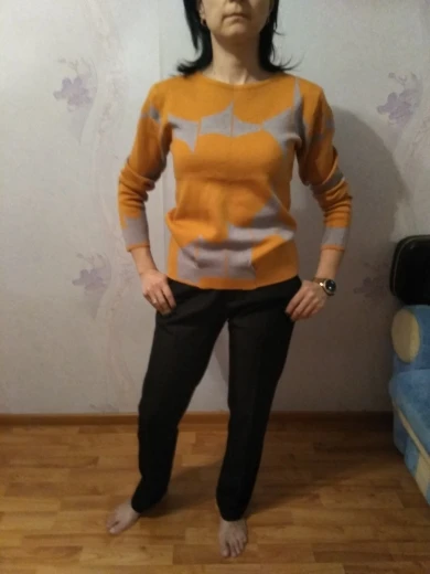 Этот свитер имеет красивый и теплый трикотаж. Я носил его в эту плохую погоду и был в нем уютным.