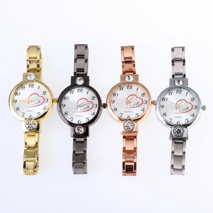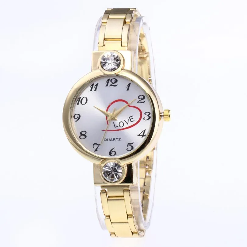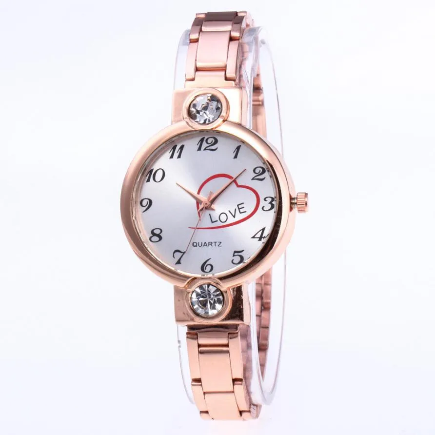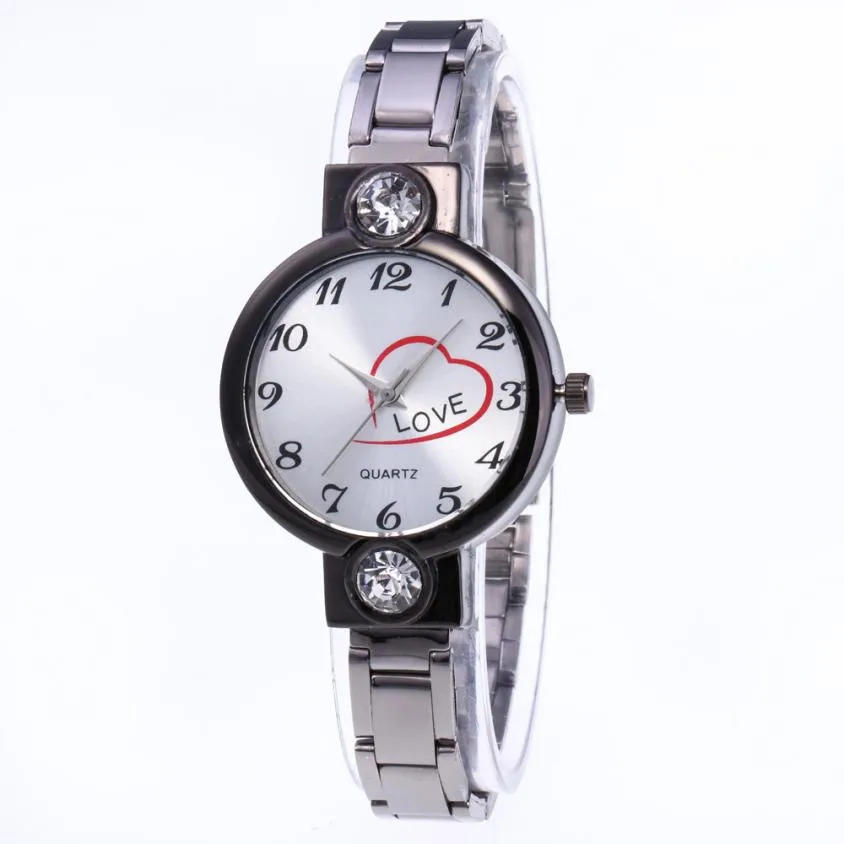 Женские Аналоговые кварцевые часы TZ #502 с сердечком и браслетом из нержавеющей стали