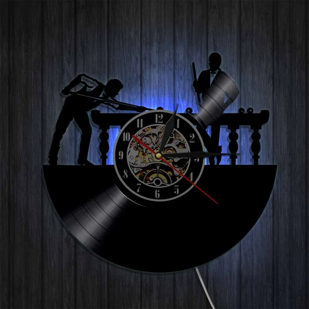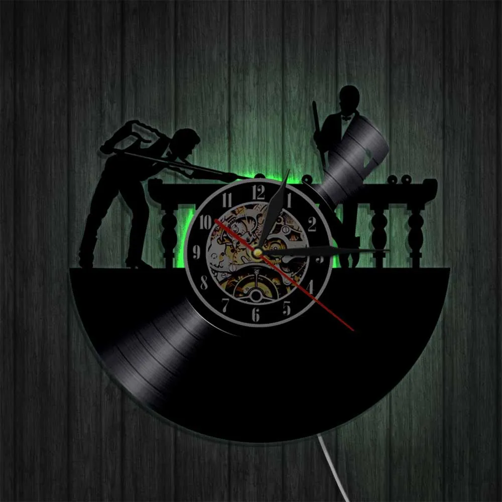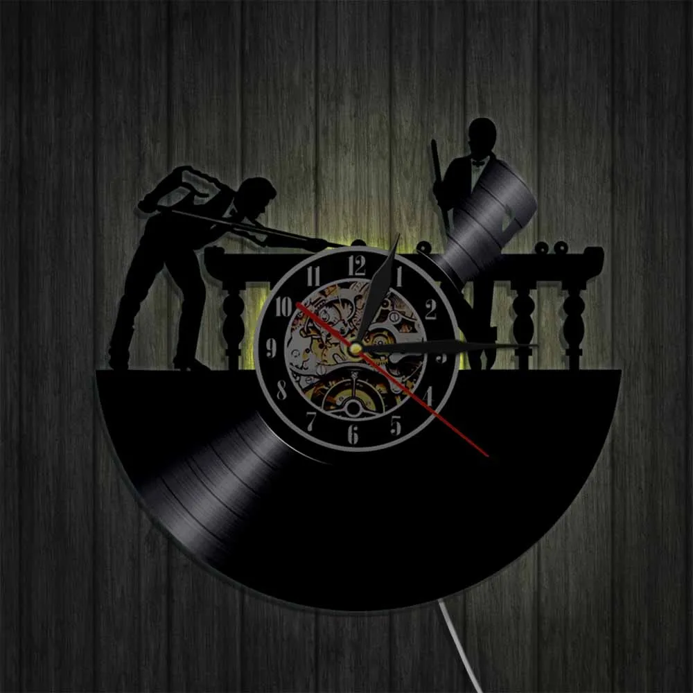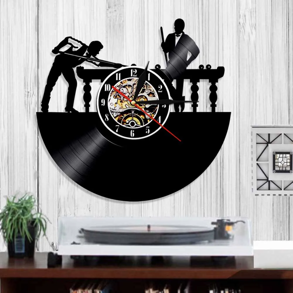Спортивные настенные часы для бильярда с виниловой пластиной, современный дизайн, настенные часы для бассейна, игроков, украшение для бильярдной комнаты, уникальные подарки