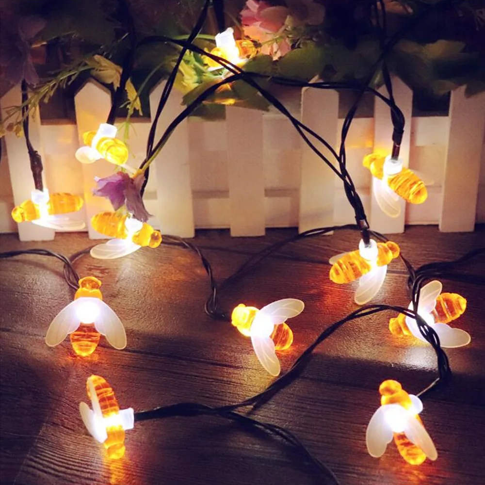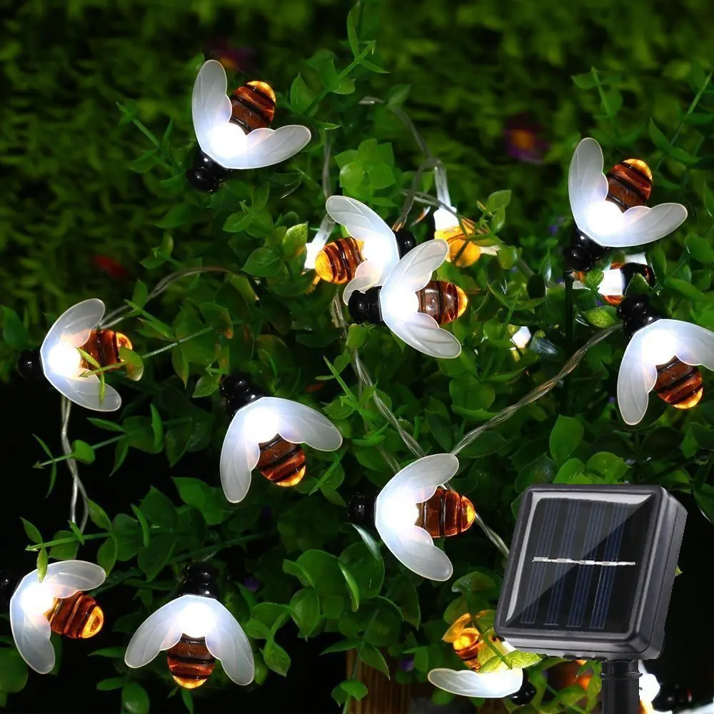 Светодиодная гирлянда на солнечной батарее в форме пчелы, уличная лампа-веревка для сада, патио, дерева, вечерние ничное украшение, 50 светодиодов