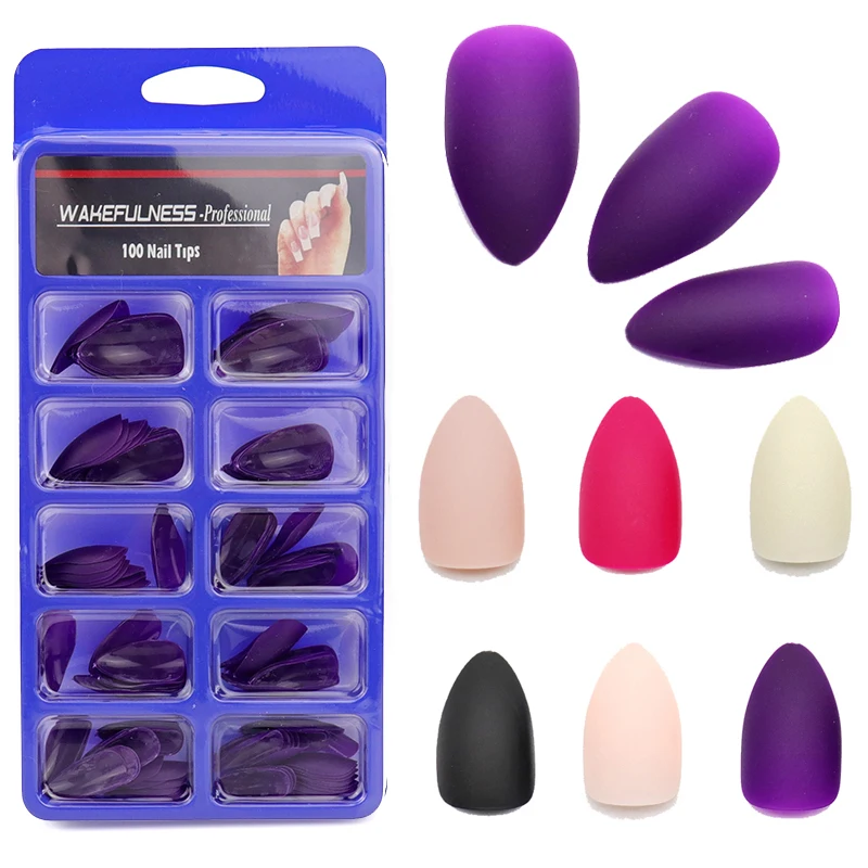 Накладные ногти, матовые, акриловые, 100 шт.кор., модные, острые, о...