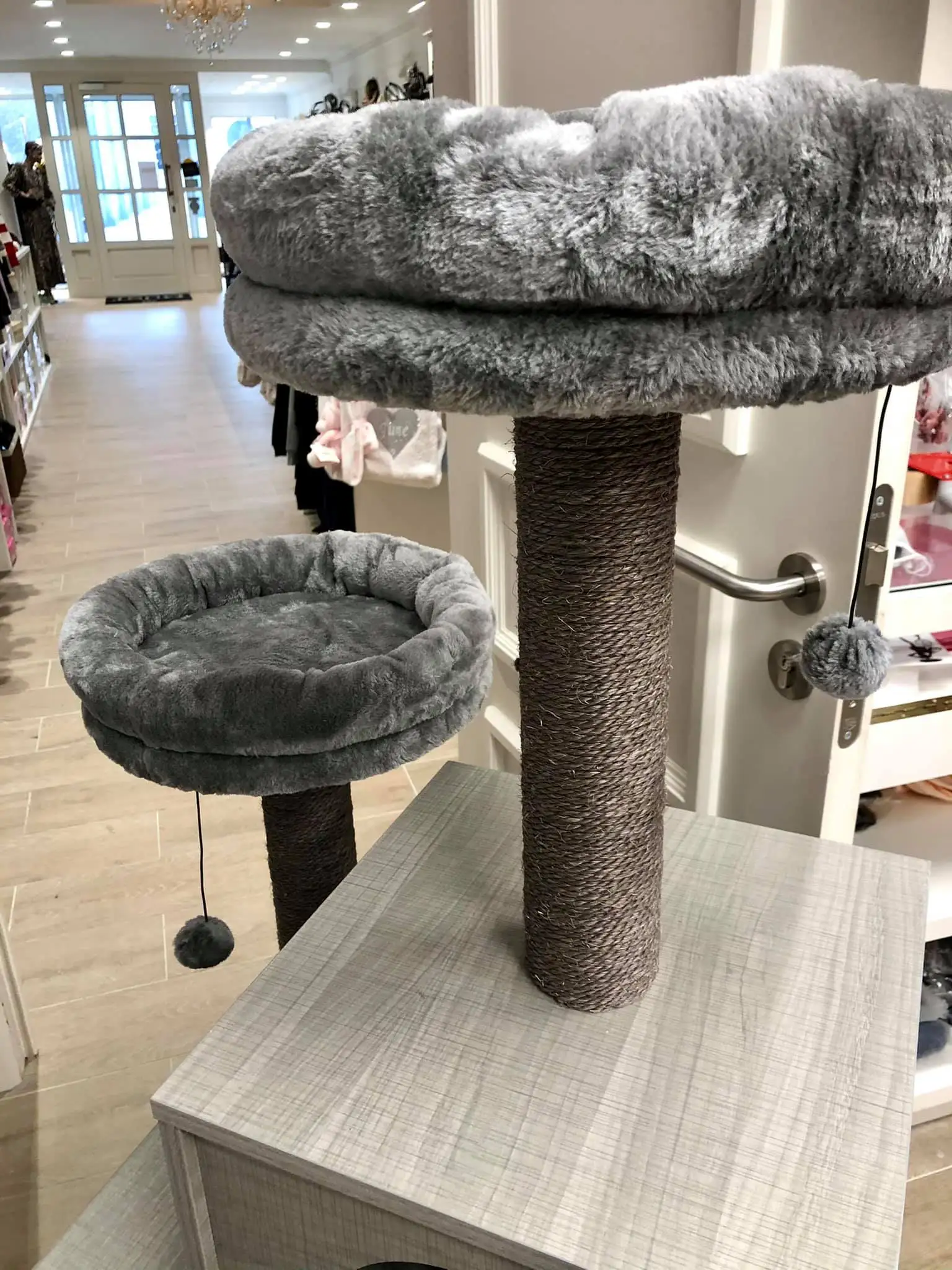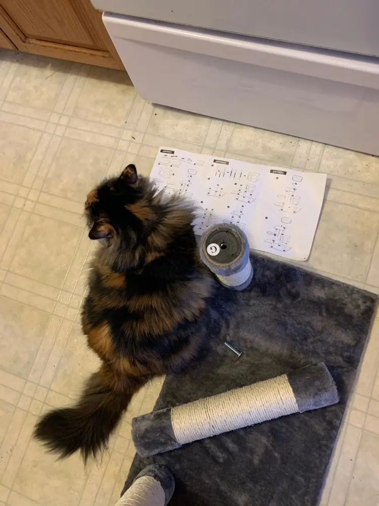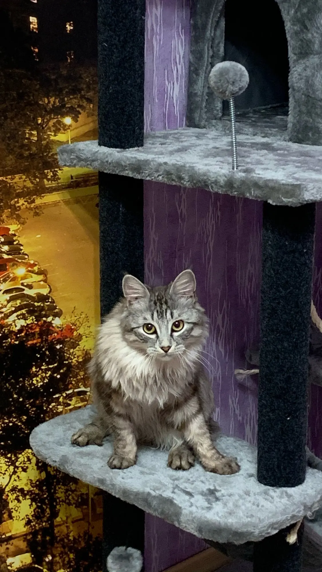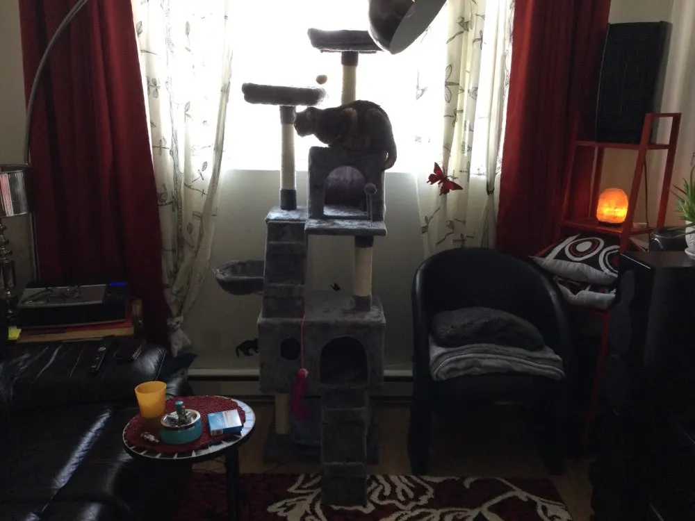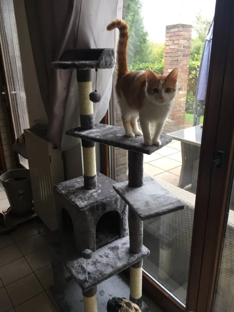 Это кошачье Дерево Отлично, очень высокое и идеально подходит к окну, поэтому кошка может смотреть и наслаждаться кошачьим ТВ (вид на улице;) дерево было очень легко собрать, вам не нужны специальные инструменты, все идет в одной упаковке. Мы также получили три дополнительных меховых шарика (без Пуна) в качестве замены тех, которые будут снимать. Я думаю, если у вас есть две кошки, у этого дерева также будет достаточно места для обоих из них