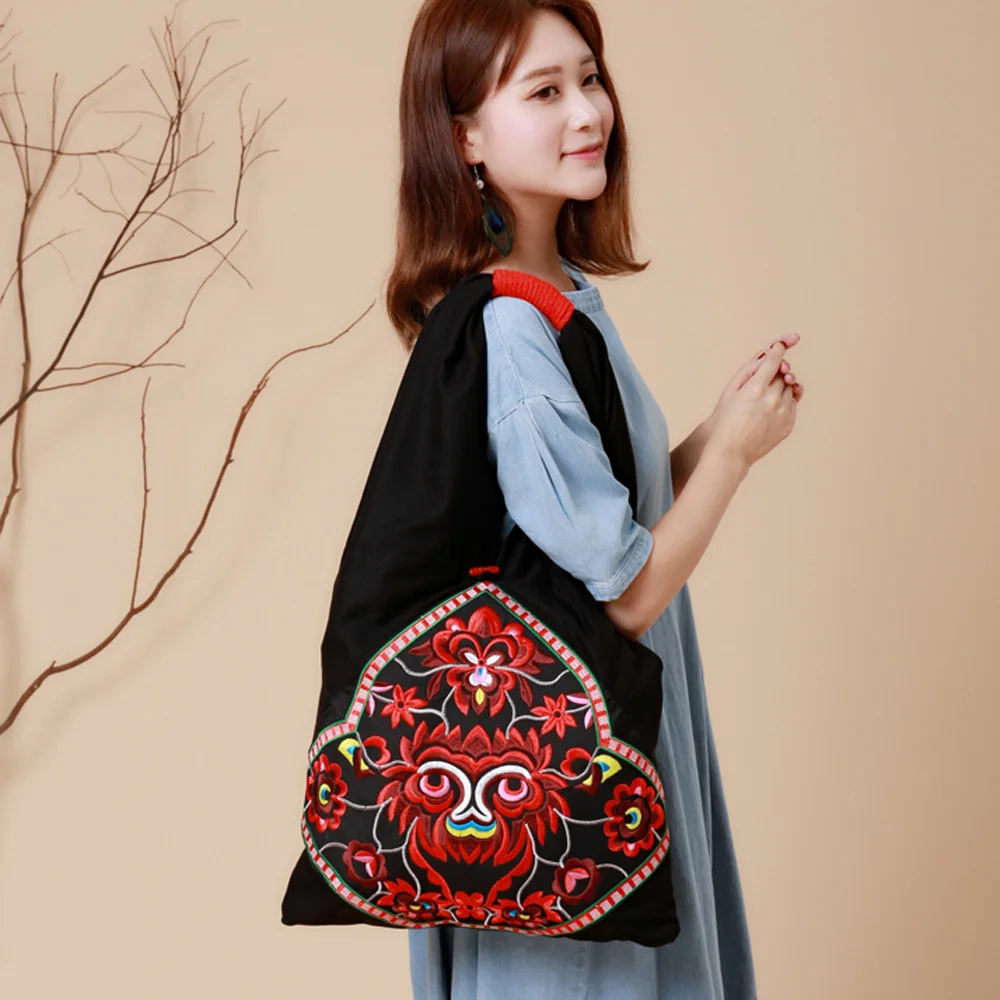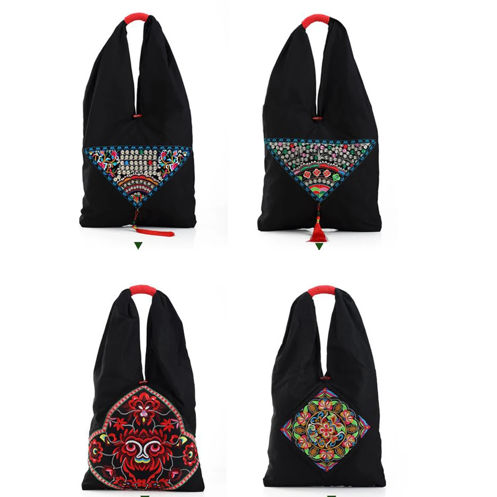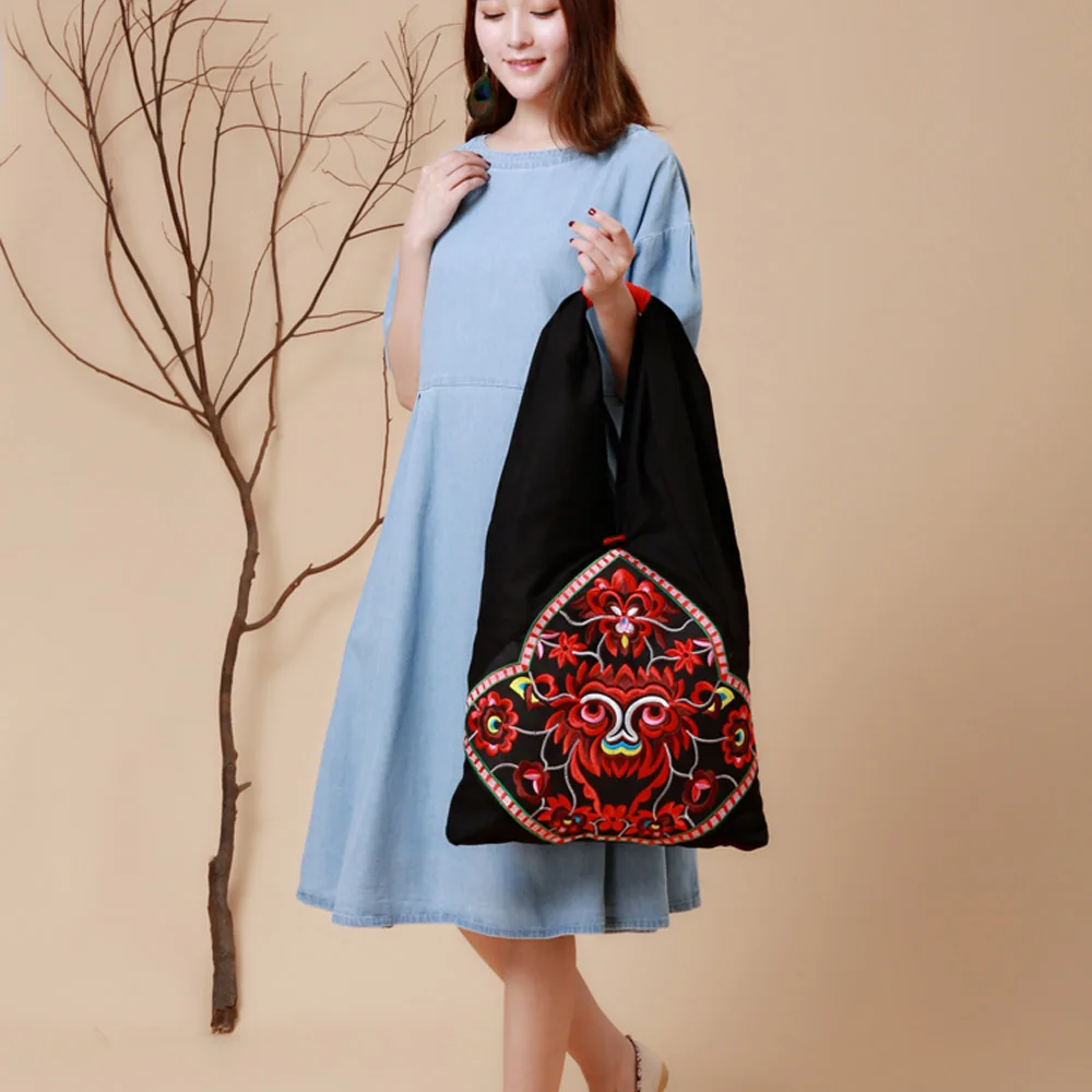 Женские сумки, этнические сумки с вышитыми цветами, Большая вместительная сумка на плечо, холщовая Ретро женская сумка, большие сумки для покупок и поездок для женщин