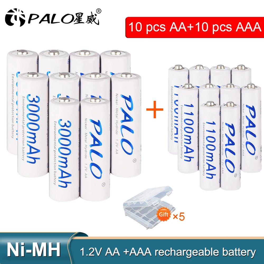 Аккумуляторы PALO, 1,2 в, 3000 мА ч, 8 шт., 1100 мА ч, ААА, для игрушек, автомобильных светильник Рей