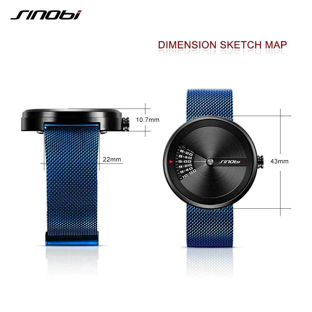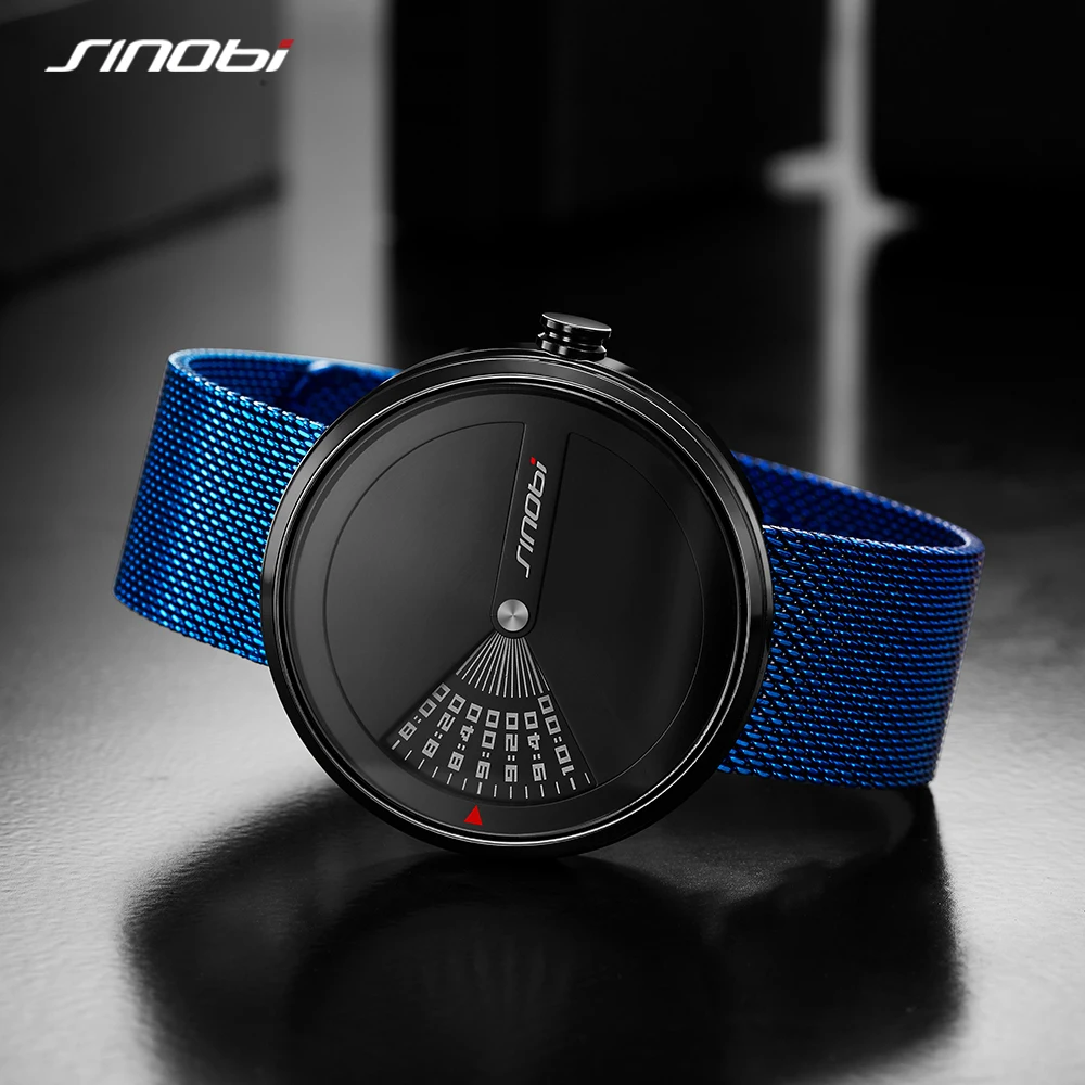 Мужские модные часы SINOBI, оригинальный дизайн, креативные наручные часы с сетчатым ремешком из нержавеющей стали, мужские деловые часы, мужские часы