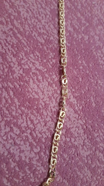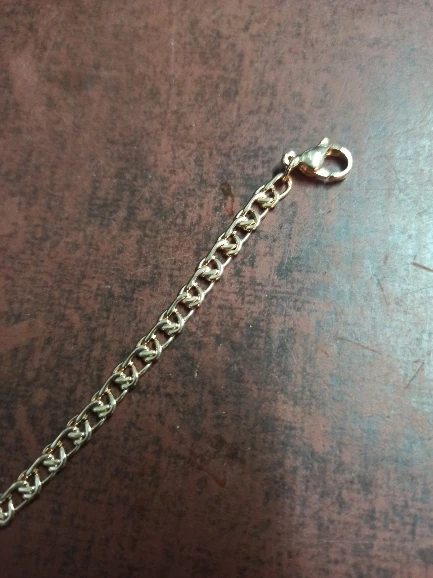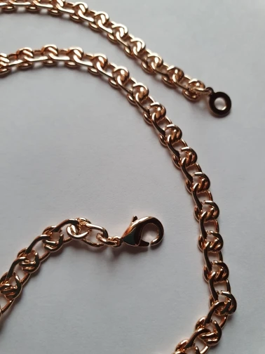 цепочка понравилась, похожа на российское золото 585 пробы. Крупная, красивое плетение. Карабин работает хорошо. Очень довольна.