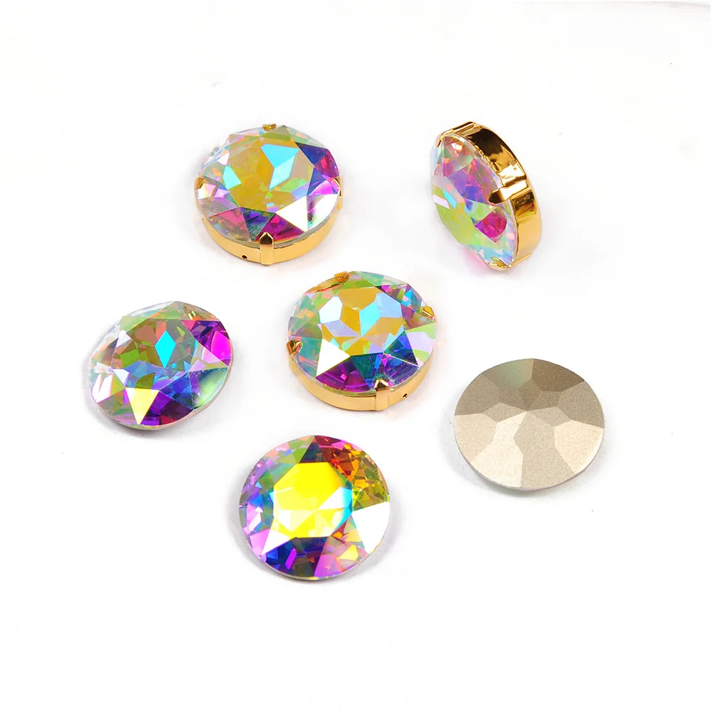 Круглый кабошон SW1201 "сделай сам", кристаллические стразы АВ, большой камень риволи для пришивания с закрепкой в виде когтей, Необычные Стразы для украшений, платьев