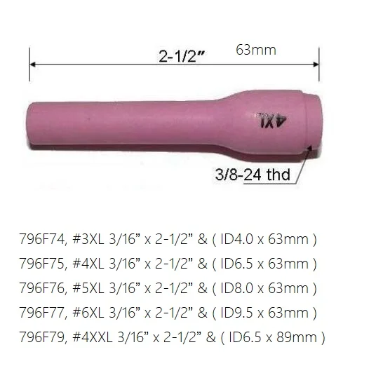 Набор расходных материалов для TIG сварочной фонарь 796F75 3XL, 5 шт., длинные глиноземная керамическая насадка, расходные материалы SR PTA DB WP 9 20 25 Series