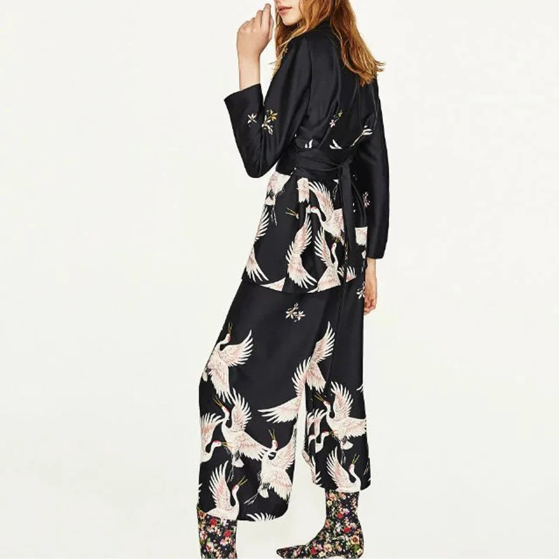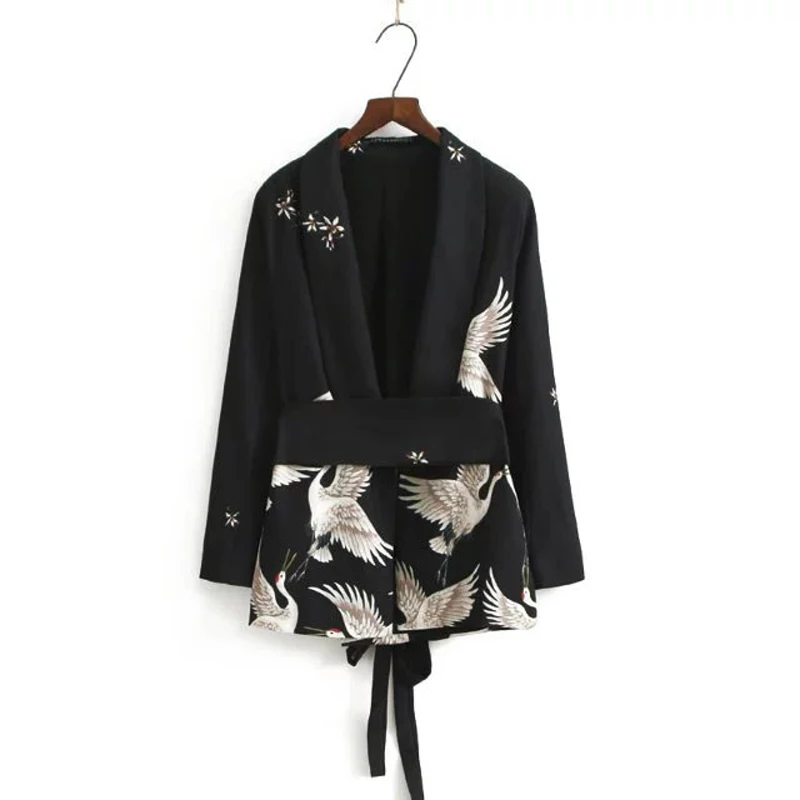 Женская шифоновая куртка-кимоно, осенняя Базовая куртка-бомбер с длинным рукавом и фламинго, пальто-кардиган