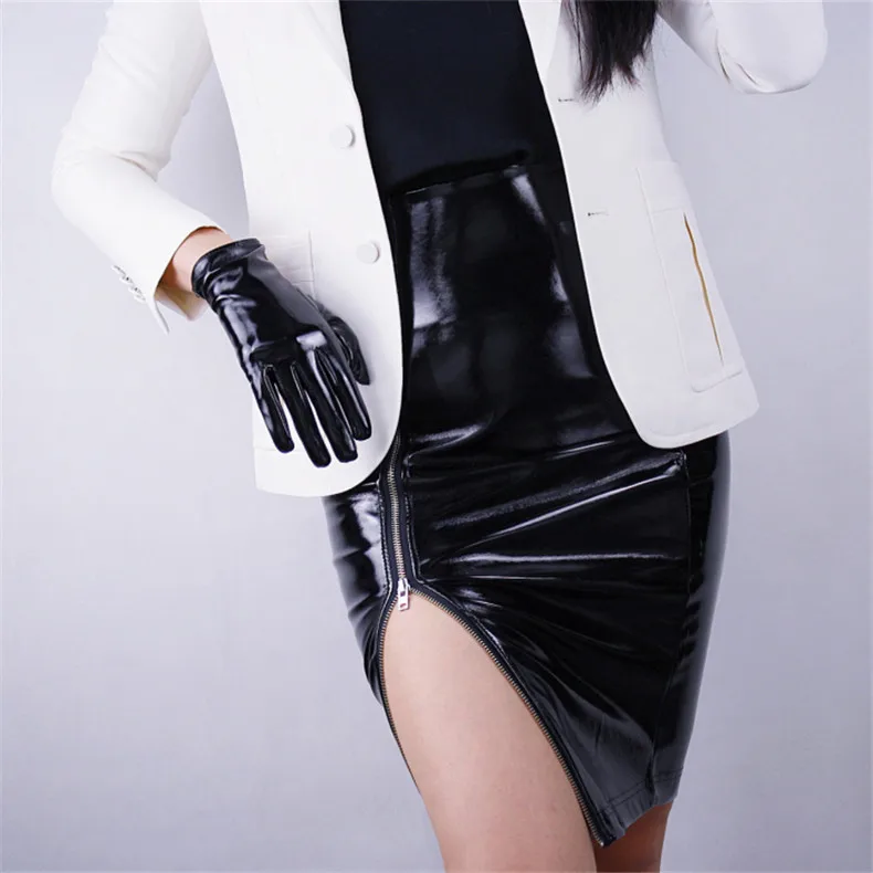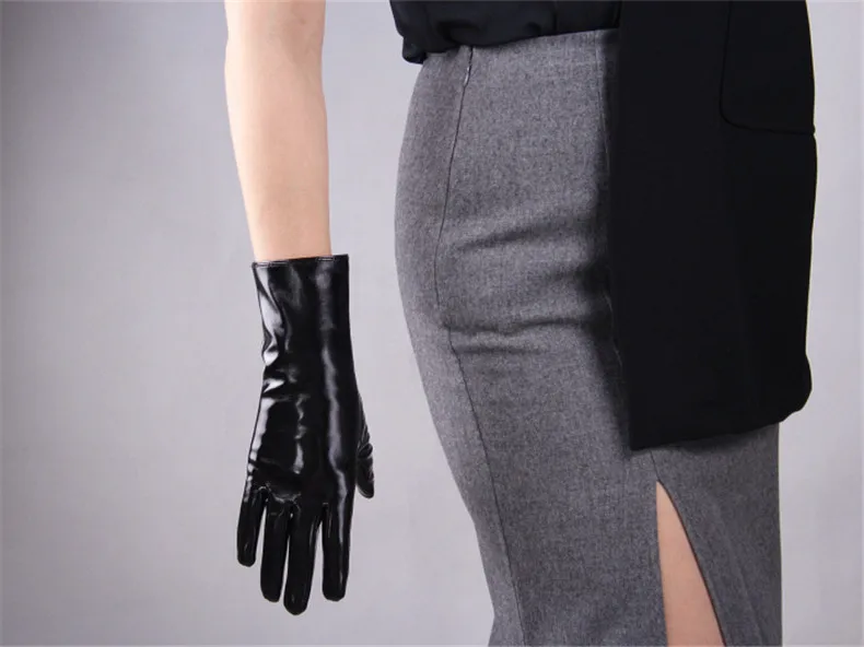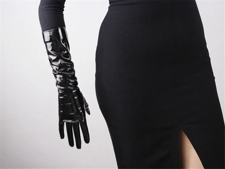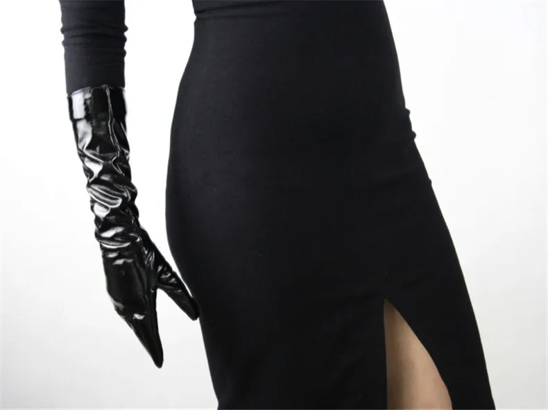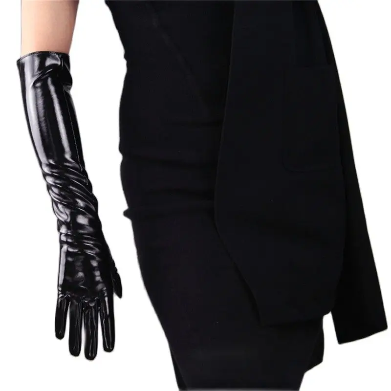 Перчатки женские из лакированной кожи, удлиненные, 70 см, из искусственной кожи, яркие, черные, WPU04