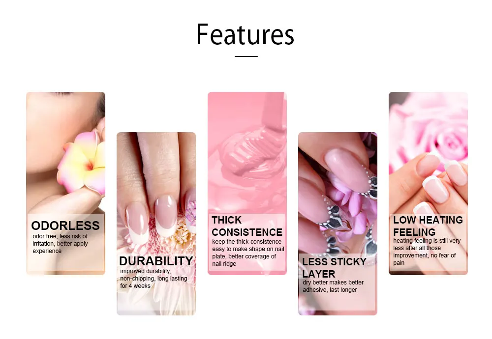 Отличные комуфлирующие базы Очень похожи на гели для наращивания, но более податливы и удобны в работе. Меняют свою консистенцию в зависимости от температуры воздуха, так что в очень жаркую погоду они скорее всего будут затекать всюду, а в прохладном помещении нужно флакончик немного согреть. Просыхают базы хорошо, пробовала даже сушить уф фонариком на батарейках, все просохло достаточно быстро. Однозначно рекомендую к покупке Подробнее можно посмотреть на моем канале ClickNails