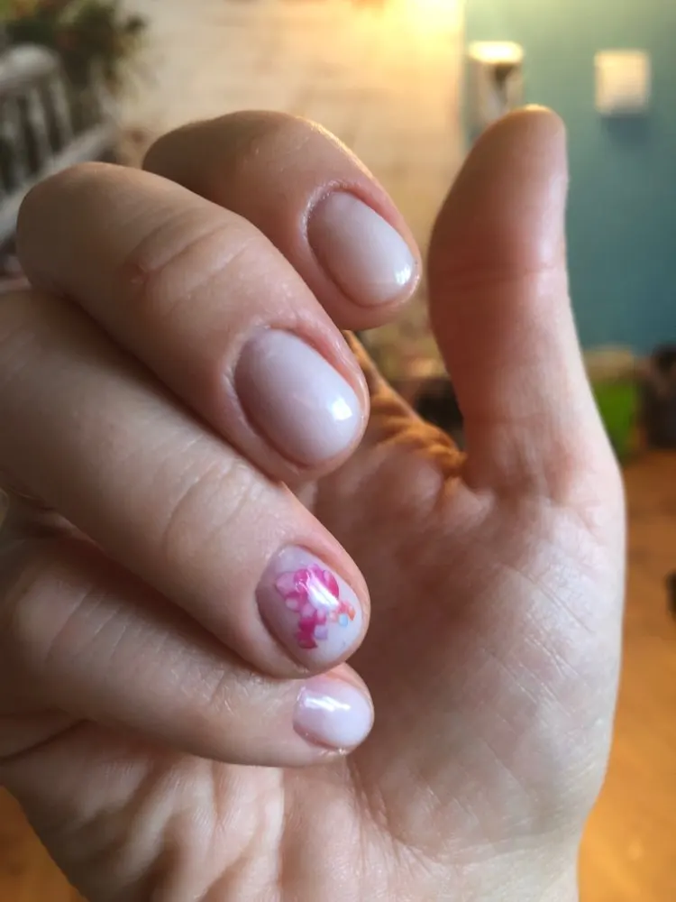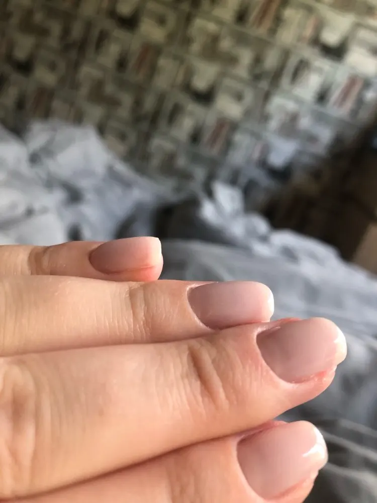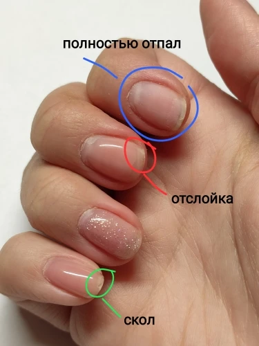 Доставка месяц. Очень бледная база, совсем прозрачная, для френча не подойдет, не перекроет ноготь, свободный край сильно просвечивает. Как самостоятельный цвет смотрится хоро, легко. Цвет отличный, натуральный. Наносила на тонкую подложку своей проверенной базы. За две недели на рабочей руке отвалился целый ноготь, на другом с торца пошла отслойка, на третьем ногте скол. Полный набор в общем. Другая рука относилась хорошо.