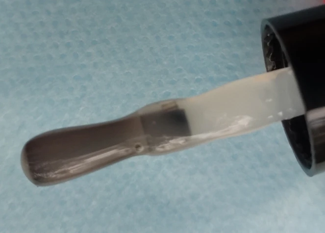 Товар пришёл быстро. По консистенции, что-то типа густой базы. Мне понравилось) На фото один белый, второй прозрачный