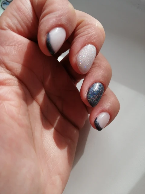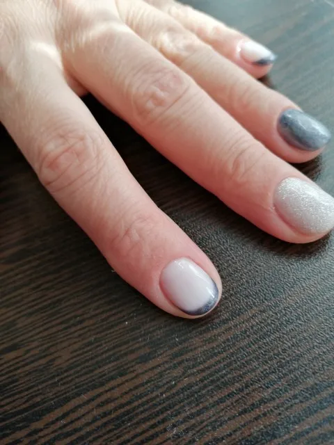базу взяла молочного оттенка, очень красивая и нежная, сразу не растекается работать одно удовольствие с ней. Единственный минус это печет немного в лампе, но не смотря на это результат меня порадовал))